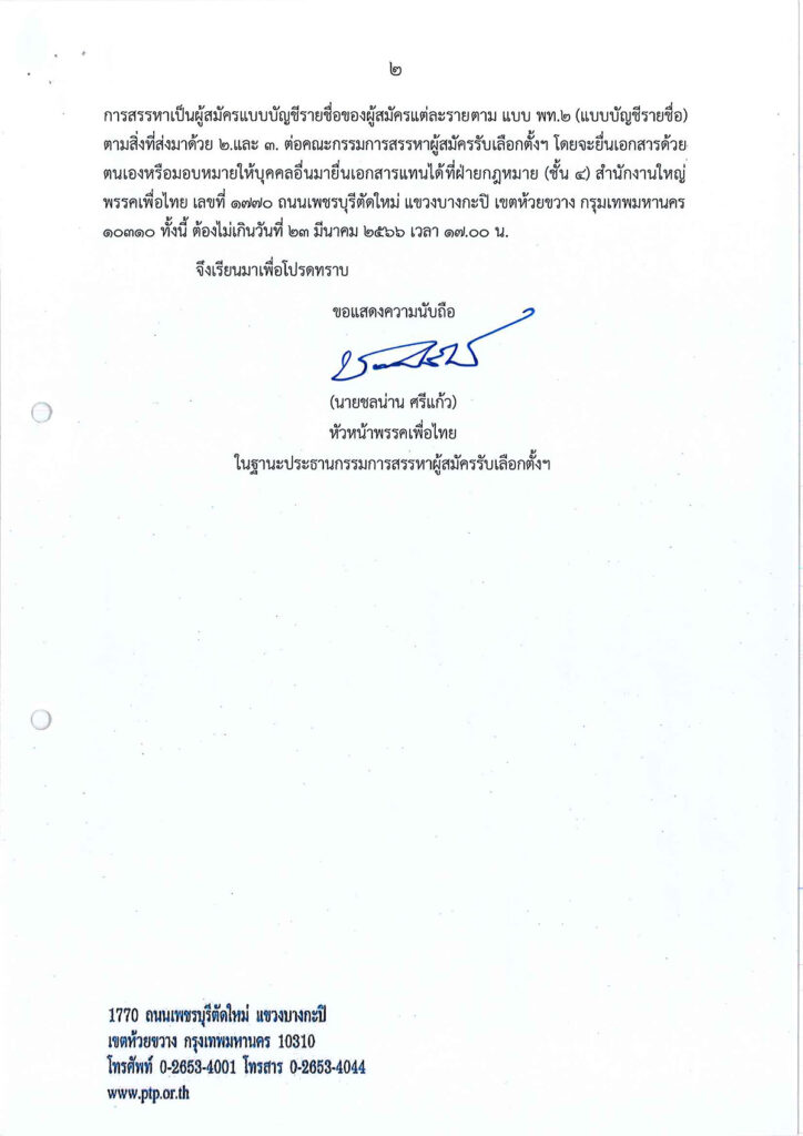 ประกาศพรรคเพื่อไทย ที่ ๐๖๑/๒๕๖๘ เรื่อง ขอให้สมาชิกพรรคเพื่อไทยชำระค่าบำรุงพรรคการเมืองแบบรายปี ประจำปี ๒๕๖๘