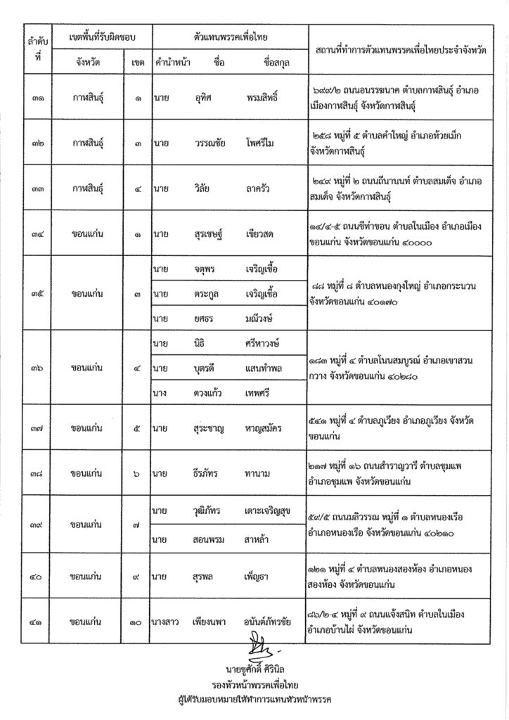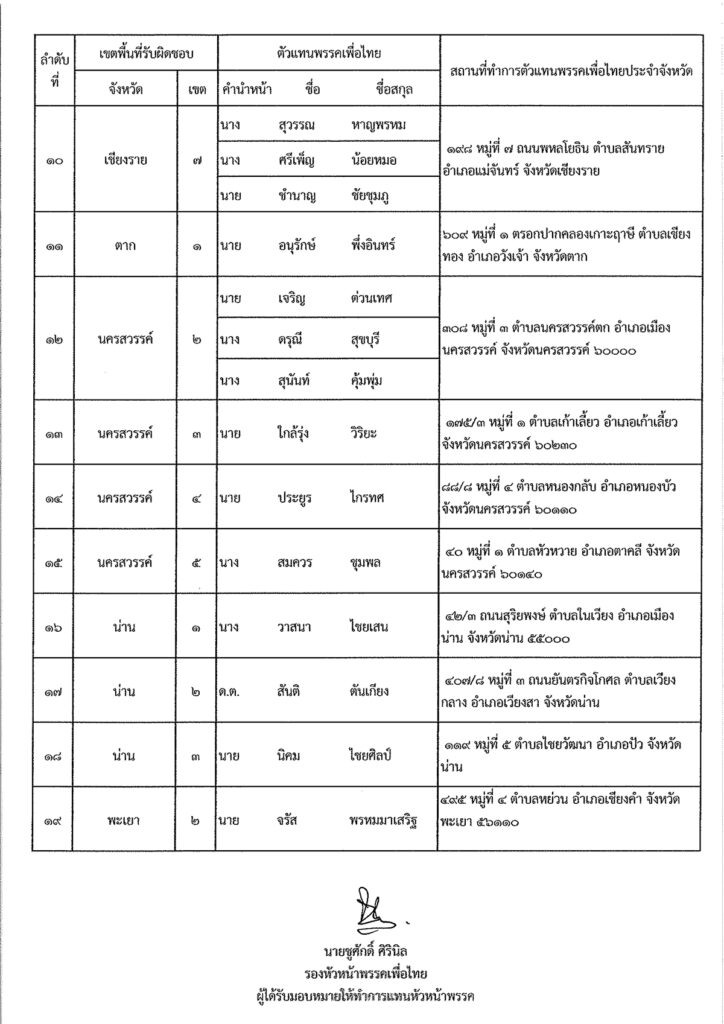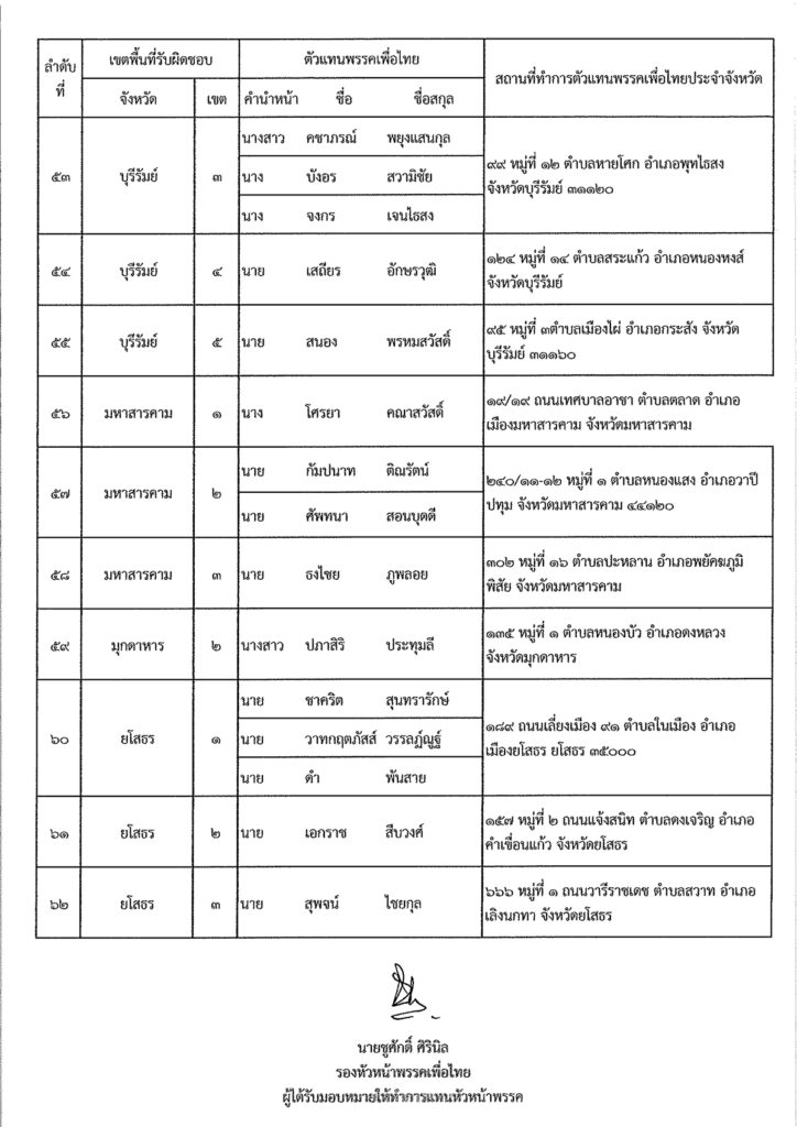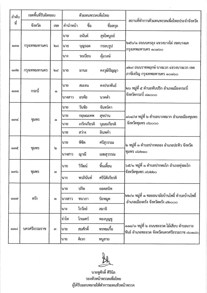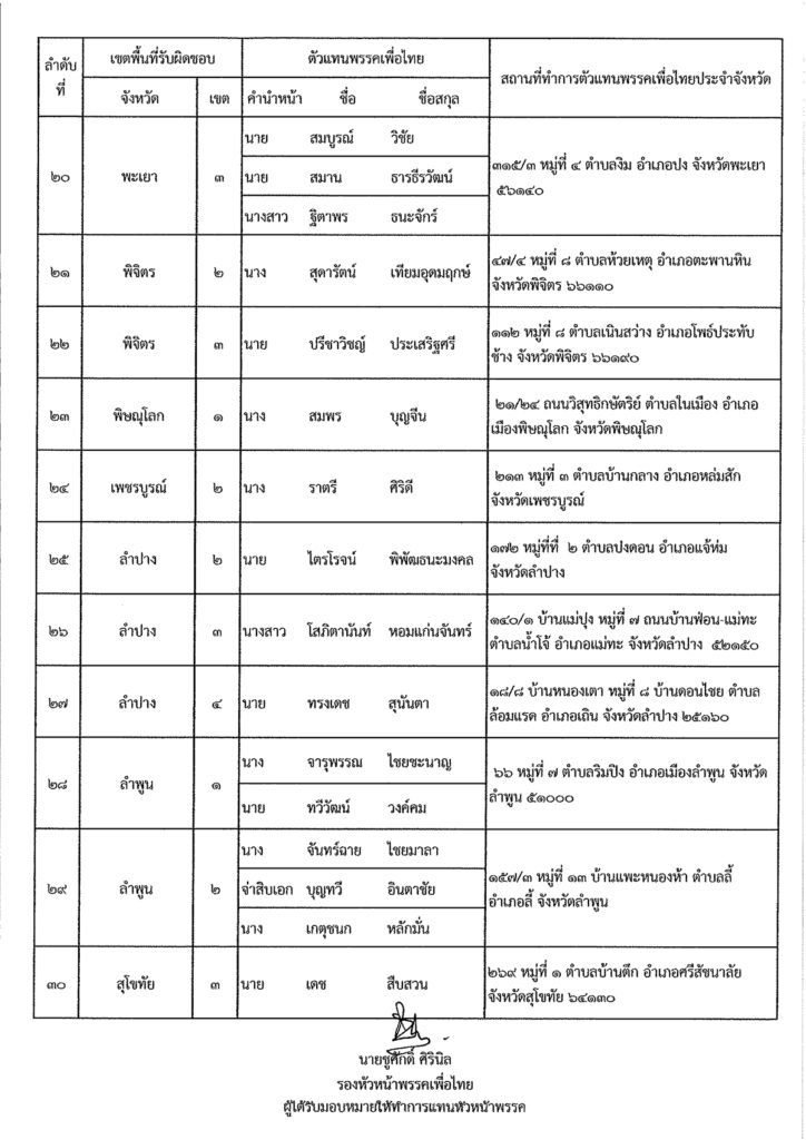 ประกาศพรรคเพื่อไทย ฉบับที่ ๐๖๓-๒๕๖๘ เรื่อง การเปลี่ยนแปลงตัวแทนพรรคเพื่อไทยประจำจังหวัดแม่ฮ่องสอน