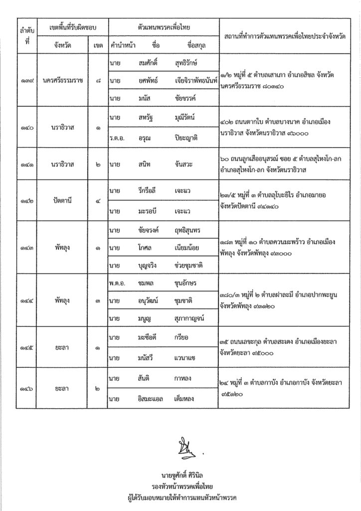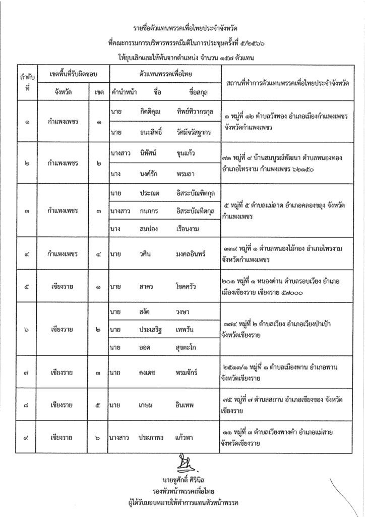 ประกาศพรรคเพื่อไทย ฉบับที่ ๑๔๕ ปี ๒๕๖๖ เรื่อง การยุบเลิกตัวแทนพรรคเพื่อไทยประจำจังหวัดและให้ตัวแทนพ้นจากตำแหน่ง
