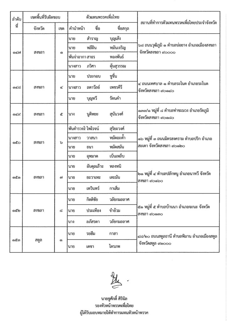 แจ้งเปลี่ยนแปลงวันที่ดำเนินโครงการประชุมสมาชิกพรรคเพื่อเลือกตัวแทนพรรคการเมือง ประจำจังหวัดสงขลา