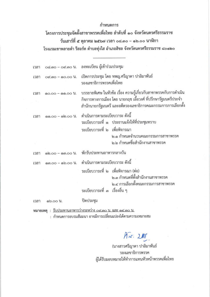 ขอเชิญประชุมใหญ่วิสามัญ ครั้งที่ ๑/๒๕๖๘ พรรคเพื่อไทย