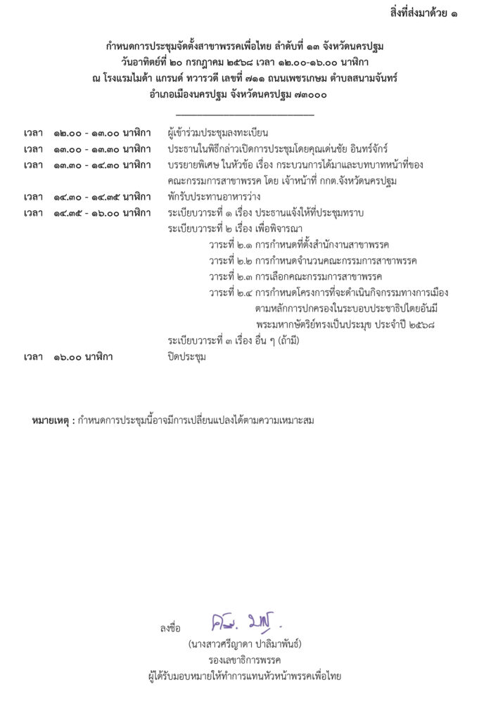 ขอเชิญเข้าร่วมโครงการประชุมสมาชิกพรรคเพื่อเลือกตัวแทนพรรคการเมืองประจำจังหวัดสุพรรณบุรี