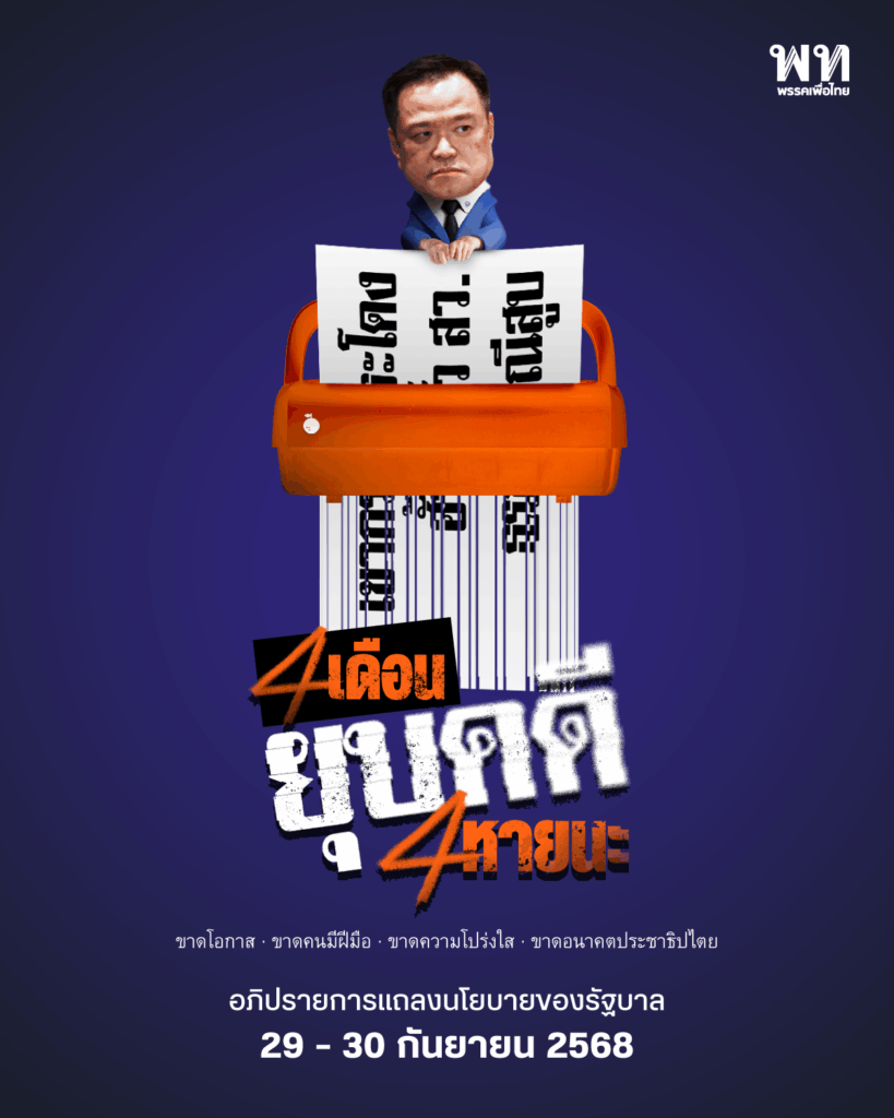 #พรรคเพื่อไทย #4เดือนยุบคดี4หายนะ #แถลงนโยบายรัฐบาลอนุทิน