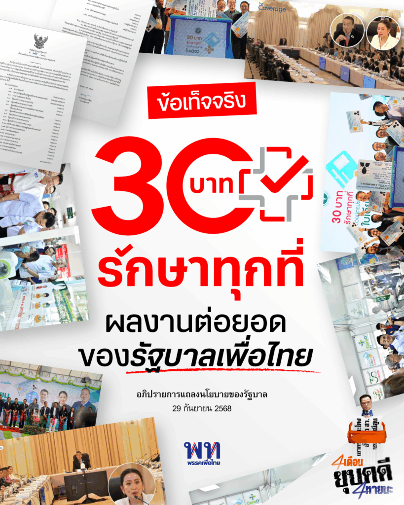 รัฐบาลเพื่อไทยได้ต่อยอดนโยบาย “30 บาท” ให้ครอบคลุมยิ่งขึ้น จนกลายเป็น “30 บาทรักษาทุกที่” อย่างสมบูรณ์ ประชาชนสามารถเข้ารับบริการได้ทั้งในโรงพยาบาลของกระทรวงสาธารณสุขและนอกสังกัด ครอบคลุมคลินิก ร้านขายยา คลินิกทันตแพทย์ โรงพยาบาลของกรุงเทพมหานคร กระทรวงกลาโหม คณะแพทยศาสตร์ต่างๆ คลินิกชุมชนอบอุ่น (เวชกรรม พยาบาล ทันตกรรม กายภาพบำบัด เทคนิคการแพทย์ แพทย์แผนไทย) ร้านยาคุณภาพ การแพทย์ทางไกล (Telemedicine) ตลอดจนคลินิกเอกชนที่เข้าร่วมโครงการ โดยปัจจุบันครอบคลุมสถานพยาบาลในทุก 77 จังหวัดทั่วประเทศ