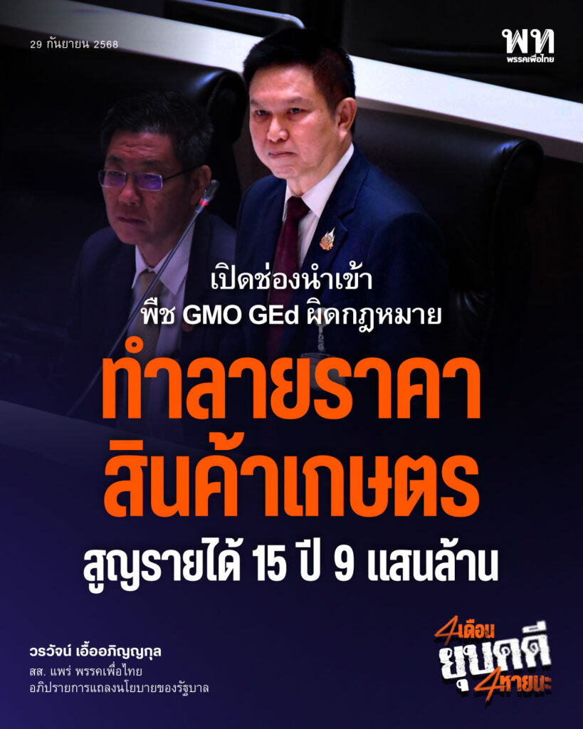 เราจะไม่ลืมว่าใครเปิดประตูนําเข้าพืช GMO ในปี 2553 ใครมีส่วนเกี่ยวข้อง และใครกําลังจะเปิดประตูเพื่อตัดต่อพันธุกรรมที่ชื่อ Gonome Edited ในวันนี้ ควรหยุดการสูบเลือดสูบเนื้อเกษตรกรไทย
