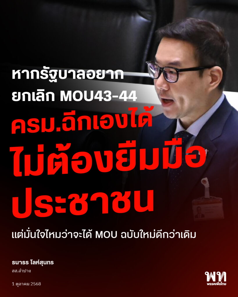 #พรรคเพื่อไทย #MOU43 #ธนาธรโล่ห์สุนทร