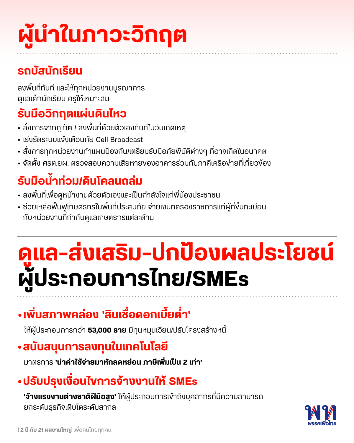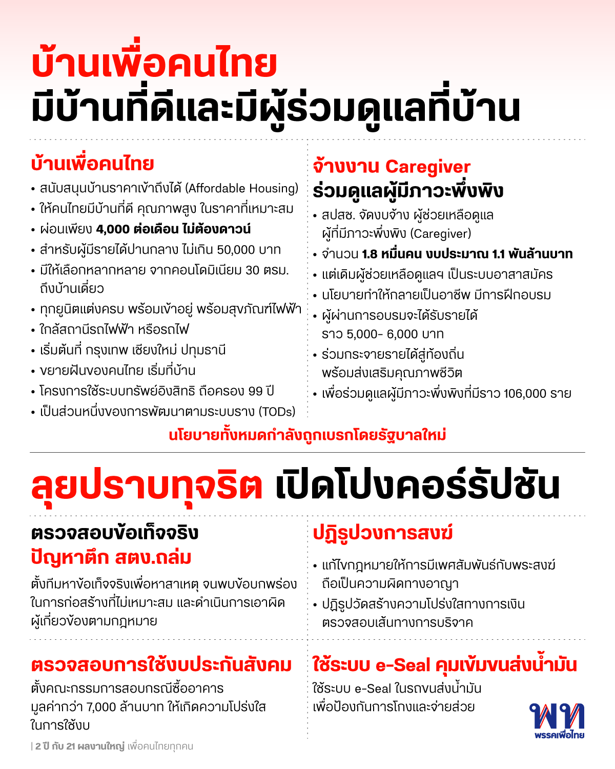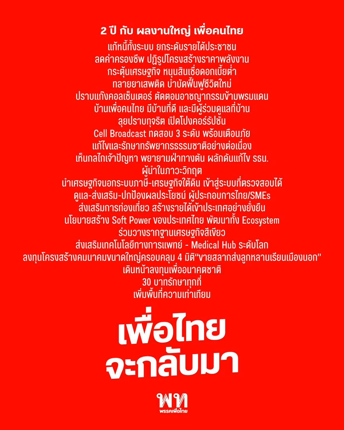 เพื่อไทยจะกลับมา : 2 ปี กับผลงานใหญ่ เพื่อคนไทย