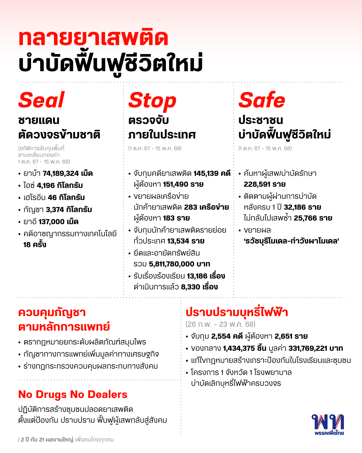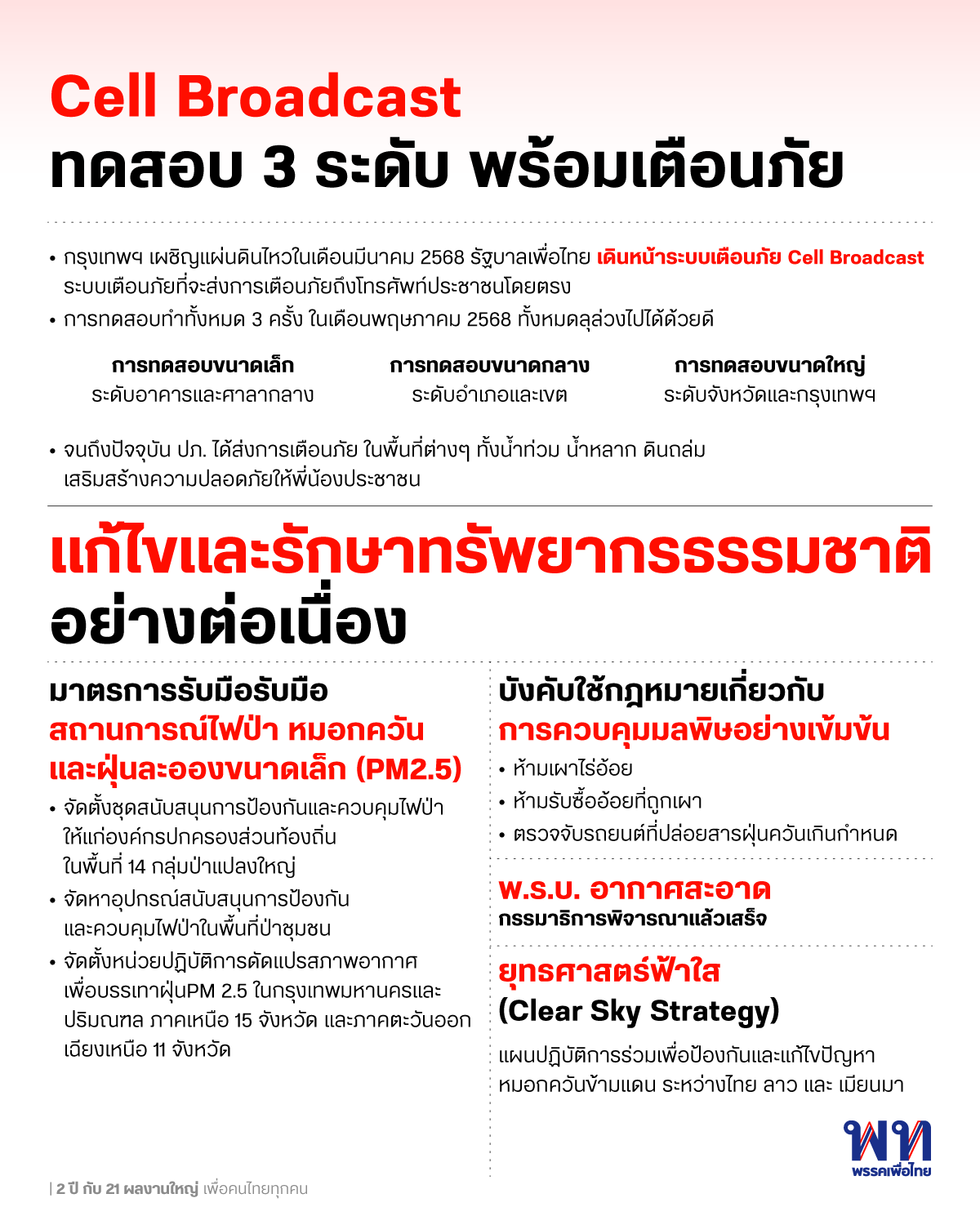 นี่คือสิ่งที่รัฐบาลภายใต้การนำของเพื่อไทยได้ลงมือทำ จากการแก้ปัญหาอย่างเข้าใจ การรับมือวิกฤต และการวางรากฐานเพื่ออนาคต ทุกนโยบายที่ได้ลงมือทำเป็นก้าวที่พรรคเพื่อไทยพร้อมจะสานต่อเมื่อได้รับความไว้วางใจจากพี่น้องประชาชนอีกครั้ง