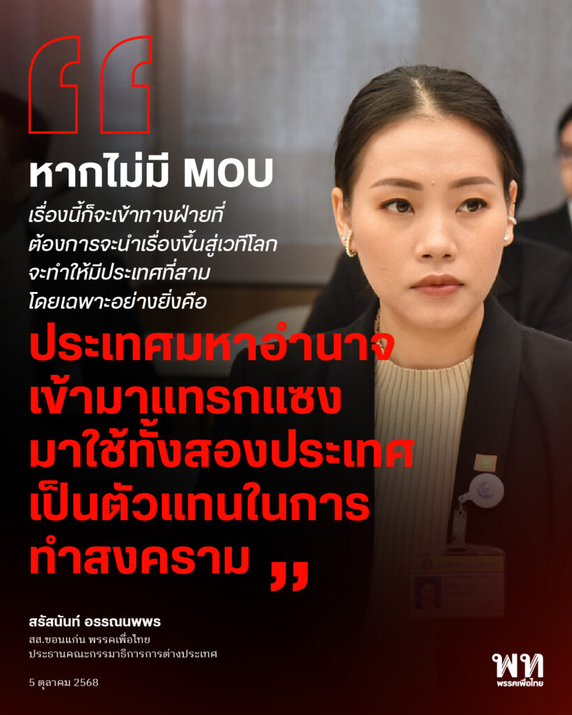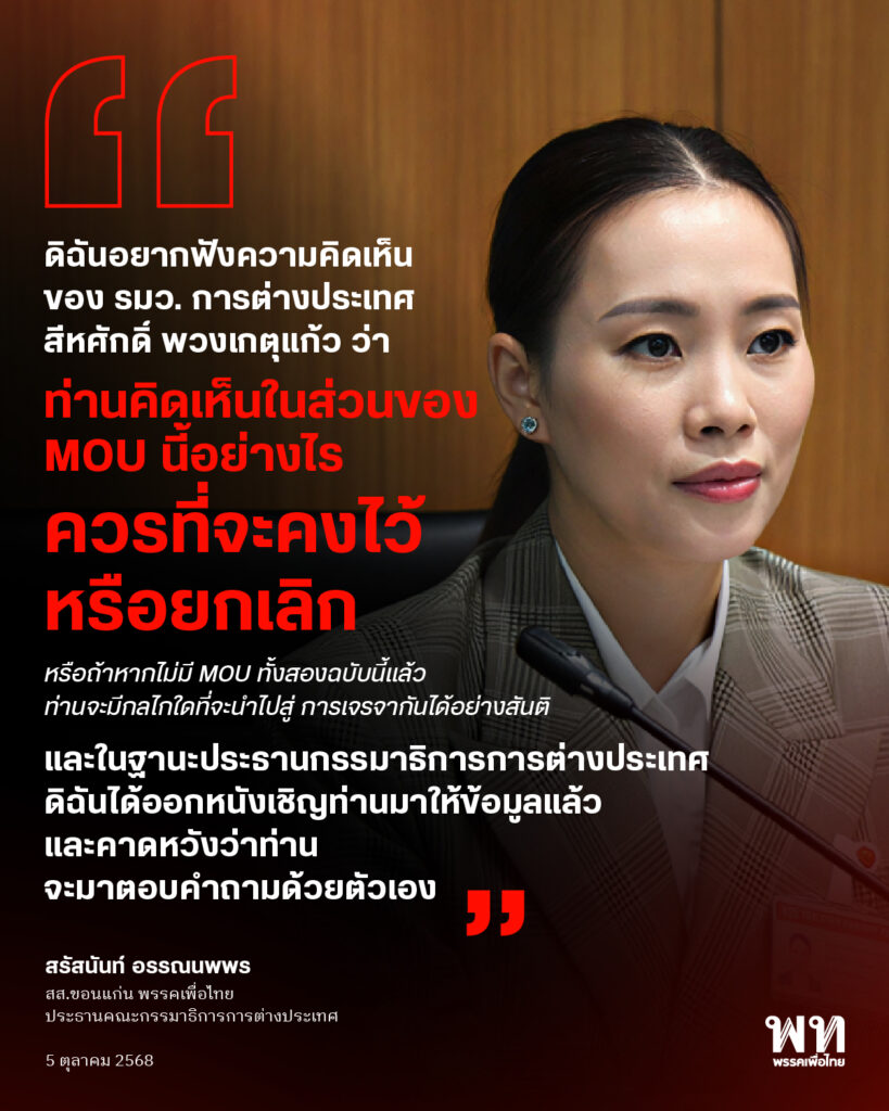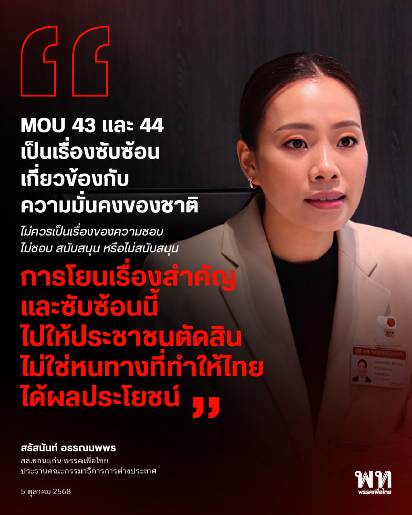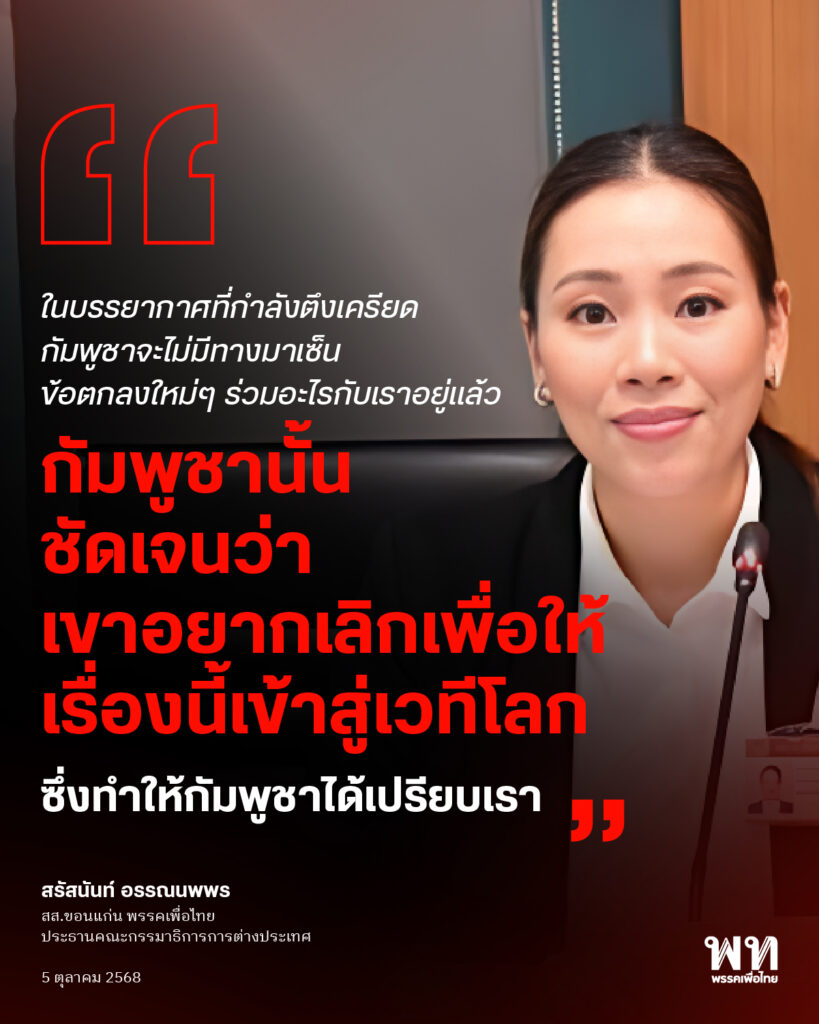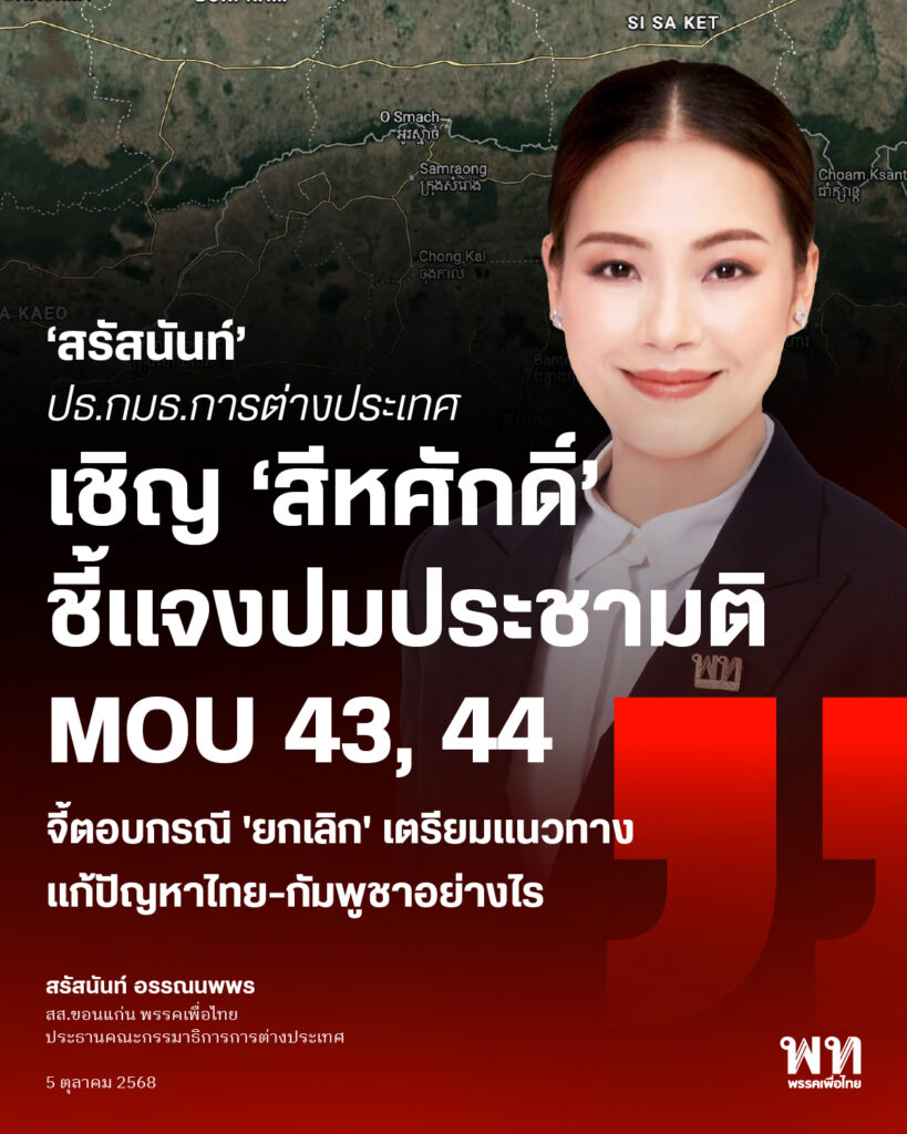 #พรรคเพื่อไทย #สรัสนันท์อรรณนพพร #ประชามติ #กระทรวงการต่างประเทศ #MOU43 44 #ความขัดแย้งไทยกัมพูชา