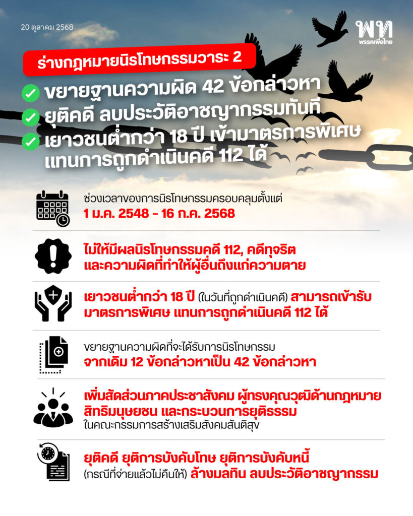 -ขยายช่วงเวลาของการนิรโทษกรรม ตั้งแต่ 1 ม.ค. 2548 – 16 ก.ค. 2568 (จากเดิมครอบคลุมเพียง 2548-2565)
