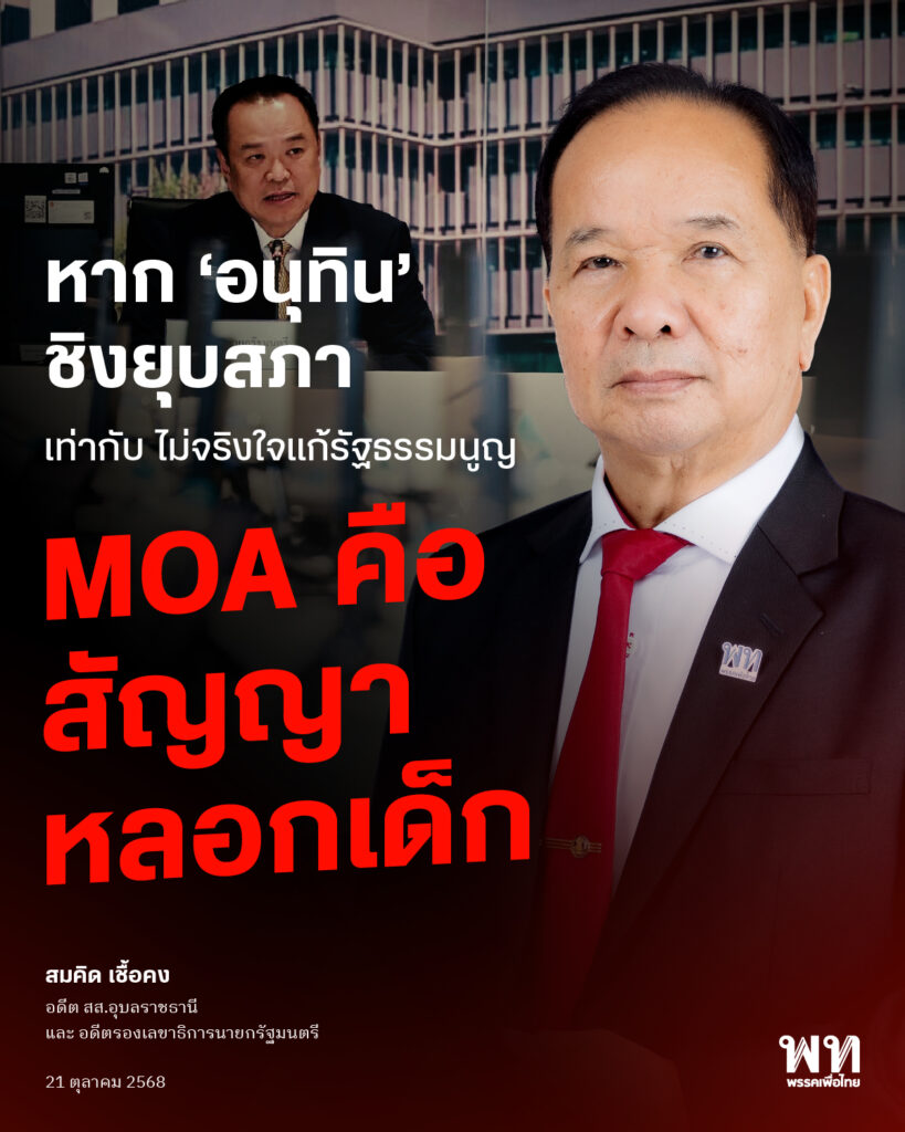 ‘สมคิด’ มั่นใจเพื่อไทยพร้อมในสนามเลือกตั้ง ไม่หวั่นกระสุนนำกระแส ชี้ ‘อนุทิน’ ยุบสภาเหตุเพราะไม่ต้องการแก้รัฐธรรมนูญ เชื่อ MOA คือสัญญาหลอกเด็กตั้งแต่ต้น