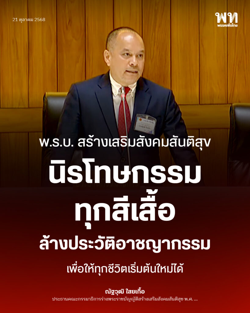 #พรรคเพื่อไทย #สร้างเสริมสังคมสันติสุข #นิรโทษกรรม #ณัฐวุฒิใสยเกื้อ
