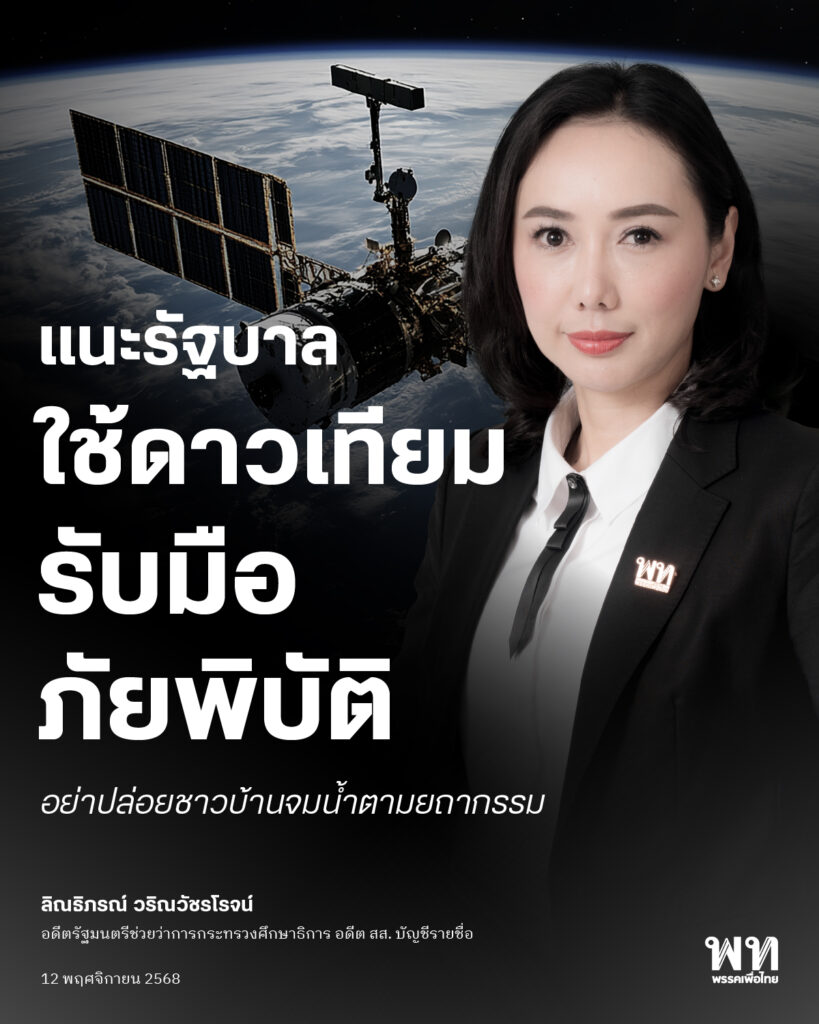 “ดิฉันและพรรคเพื่อไทยเรียกร้องไม่ใช่การ “ตื่นตูม” แต่คือการ “ตื่นตัว” เพราะการเตรียมพร้อมคือหัวใจของการบริหารประเทศที่มีความรับผิดชอบ แต่การพูดว่าน้ำจะลดเองเป็นเรื่องของฟ้า ฝน หรือดวง เป็นวิธีคิดของนักการเมืองยุคเก่า วันนี้รัฐบาลควรต้องคิดแบบวิทยาศาสตร์และมองประชาชนเป็นศูนย์กลาง เพราะสิ่งที่เราอยากเห็นไม่ใช่คำสัญญา แต่คือแผนที่ทำได้จริงก่อนทุกอย่างจะสายเกินไป” ดร.ลิณธิภรณ์ กล่าว