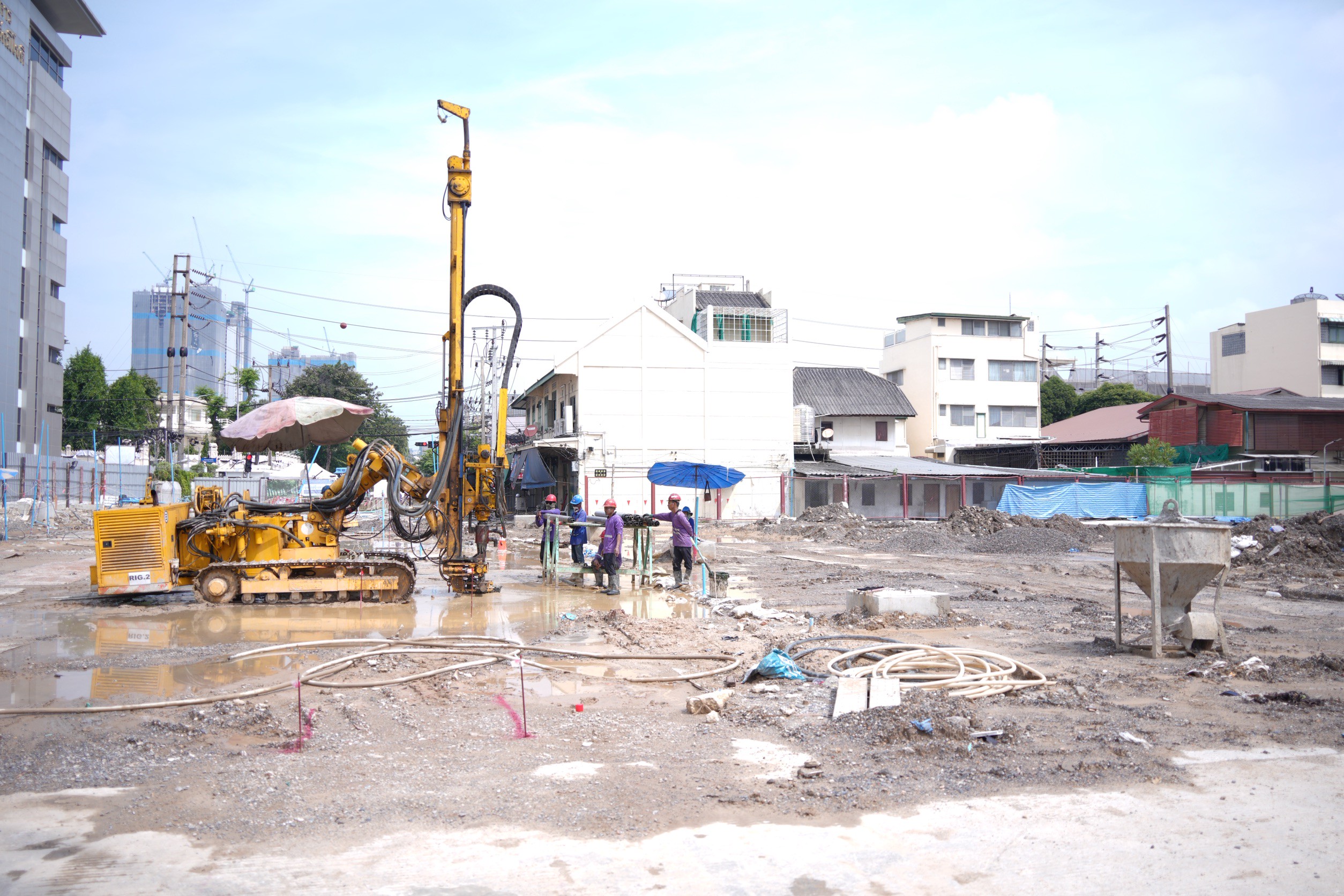 ด้านนายกฤชนนท์ อัยยปัญญา รองโฆษกพรรคเพื่อไทย กล่าวว่า จากเหตุการณ์ที่เกิดขึ้นในครั้งนี้ ผู้รับจ้างก่อสร้างคือ บริษัท ช.การช่าง จำกัด (มหาชน) และ บริษัท ซิโน‑ไทย เอ็นจีเนียริ่ง แอนด์ คอนสตรัคชั่น จำกัด (มหาชน) ในนามกิจการร่วมค้า “CKST-PL Joint Venture” ซึ่งมีความเกี่ยวข้องโดยตรงในการดูแลรับผิดชอบก่อสร้างอุโมงค์รถไฟฟ้าใต้ดินสายสีม่วงใต้ ซึ่งการก่อสร้างที่เกิดการผิดพลาดจึงก่อให้เกิดถนนยุบเป็นหลุมขนาดใหญ่กว้าง 30 x 30 เมตร และลึกกว่า 20 เมตร โดยภายหลังจากนั้น เมื่อเกิดเหตุแล้ว นายอนุทิน ชาญวีรกูล นายกรัฐมนตรี ได้กล่าวในสภาผู้แทนราษฎรในวันที่ 2 ตุลาคม 2568 ว่า จะเร่งรัดและจัดการโดยด่วน มั่นใจว่าจะคืนผิวจราจรได้ในวันที่ 9 ตุลาคม 2568 ซึ่งจากเมื่อวันนั้น จวบจนมาถึงวันนี้เวลาผ่านมาแล้วเดือนกว่า แต่พื้นผิวถนนยังคงใช้การไม่ได้ ไม่เหมือนที่ท่านได้เคยกล่าวไว้ว่า “พูดแล้วทำ” และที่พูดไว้ว่า “สั่งวันนี้ต้องเสร็จเมื่อวาน” ดังนั้นอยากขอให้เห็นใจพี่น้องประชาชนที่ได้รับผลกระทบจากเหตุการณ์ในครั้งนี้ด้วย เพื่อลดผลกระทบที่จะเกิดในวงกว้าง
