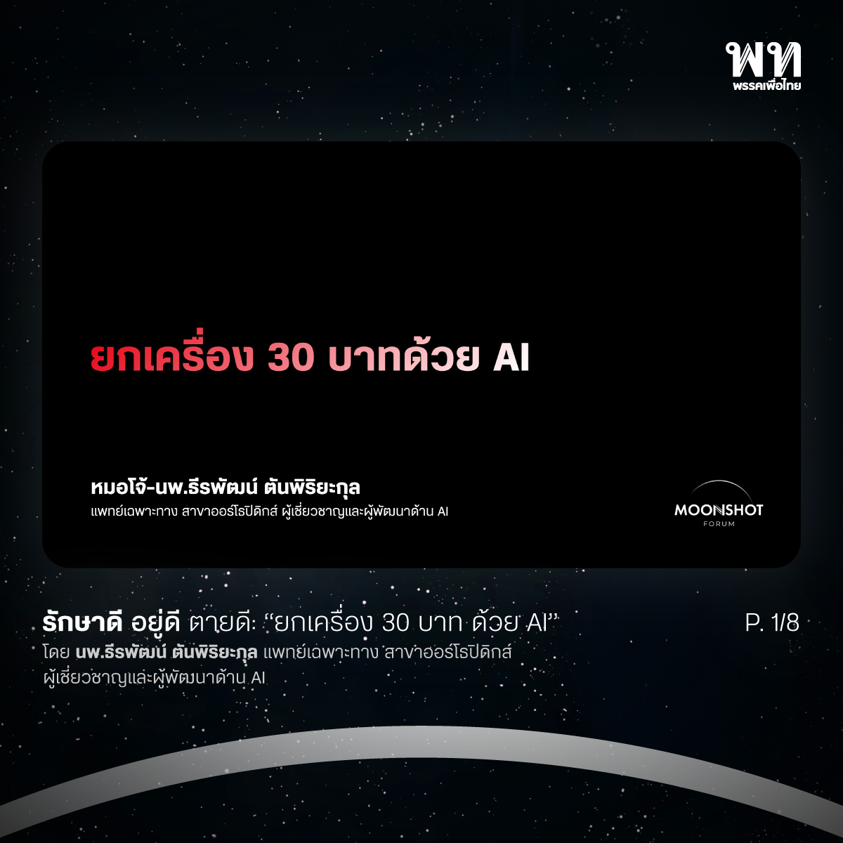 รักษาดี อยู่ดี ตายดี : ยกเครื่อง 30 บาทด้วย AI โดย นพ.ธีรพัฒน์ ตันพิริยะกุล แพทย์เฉพาะทาง สาขาออร์โธปิดิกส์ ผู้เชี่ยวชาญและผู้พัฒนาด้าน AI