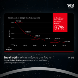 ปัจจุบันนี้การเข้าถึง AI ไม่ใช่เรื่องยาก ต้นทุนการนำ AI มาใช้ในช่วง 2 ปีที่ผ่านมาลดลงอย่างเห็นได้ชัด ฉะนั้นคำถามคงไม่ใช่ว่าเราจะนำ AI มาใช้หรือไม่ คำถามคือวันนี้เราจะออกแบบระบบบริการสาธารณสุขของเราโดยมี AI มาเพิ่มคุณค่าให้กับการบริการได้อย่างไร