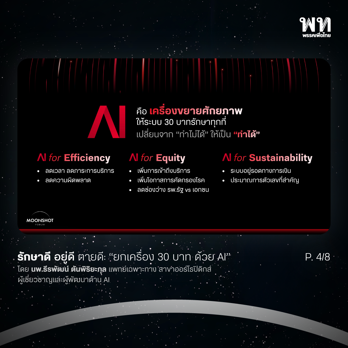 หมายเหตุ – เรียบเรียงจาก MOONSHOT FORUM ครั้งที่ 1 หัวข้อ “ยกเครื่อง 30 บาทด้วย AI : รักษาดี อยู่ดี ตายดี” วันที่ 10 พ.ย. 2568