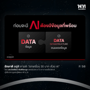 ถ้าเราพูดถึง AI เราจะได้ยินสองคำหลักๆ คือ เรื่องของข้อมูลกับโครงสร้างพื้นฐาน ข้อมูล AI เป็นเครื่องมือที่เรานำมาขยายศักยภาพของการให้บริการ ไม่ใช่สิ่งที่เข้ามาทดแทนการทำงานของคน