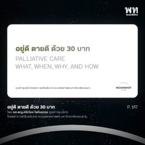 ต้องยอมรับว่าคนบ้านเราถ้าจะตาย อยากตายที่บ้าน แต่ถ้าถามคนกรุงเทพฯ ตายที่บ้านได้ไหม ไม่แน่ใจ ตายที่บ้านอาจจะไม่สุขสบาย ต้องมีทีมดูแลแบบประคับประคองเข้าไปช่วยจัดการ