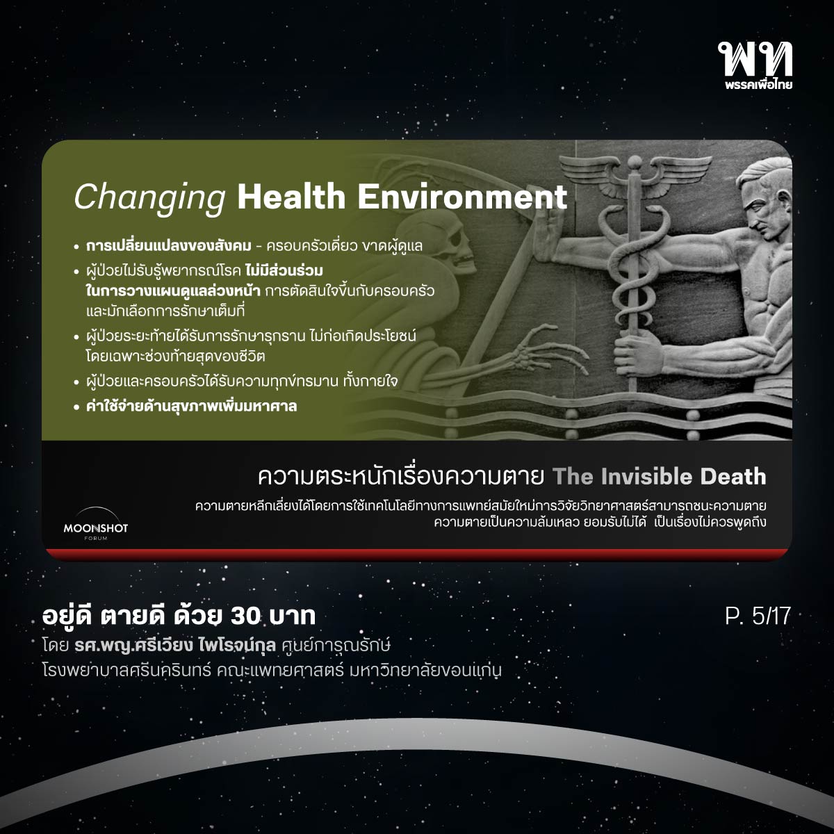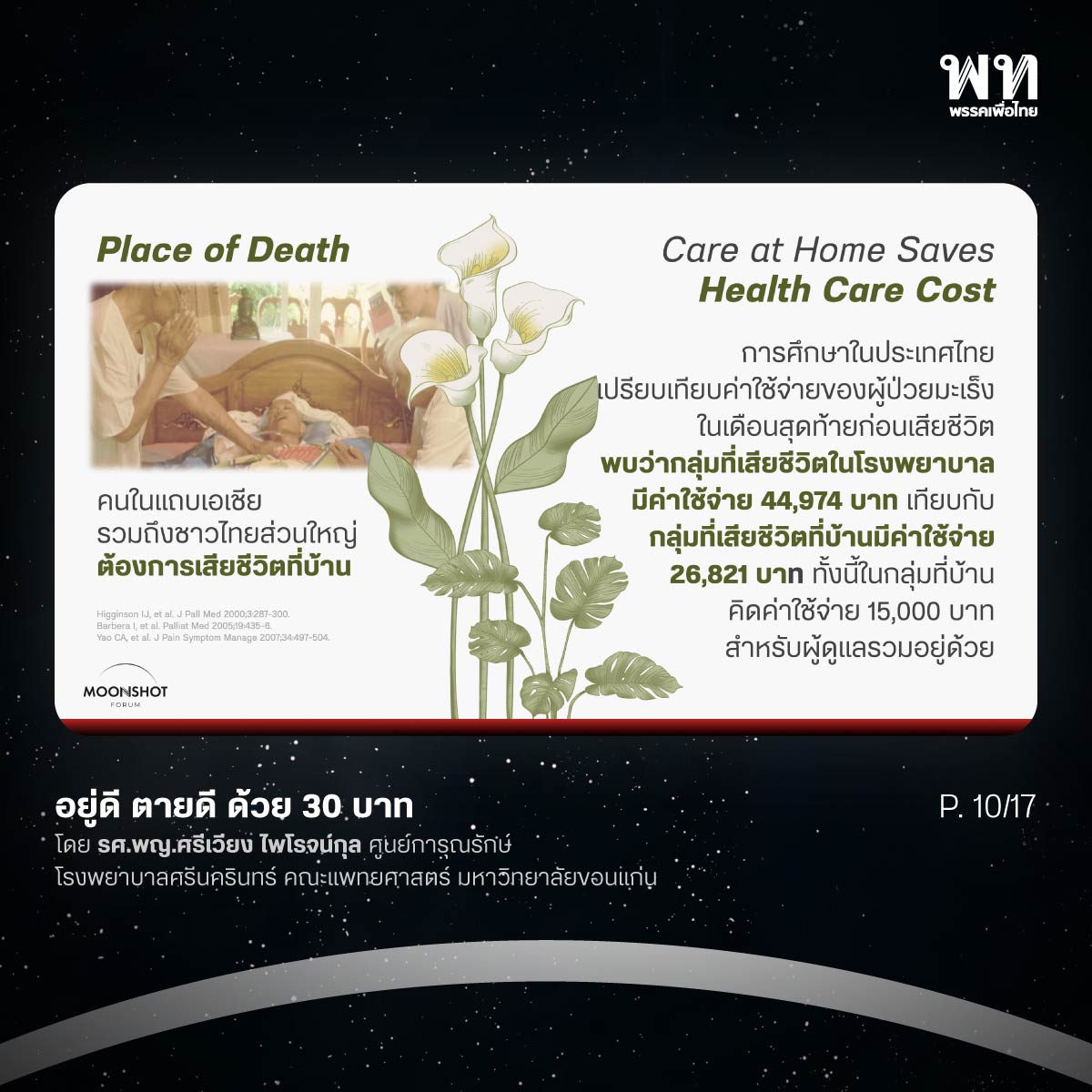 จากการศึกษาของ International Health Policy Program (IHPP) พบว่าผู้ป่วยต้องใช้เงินในระบบสุขภาพ 1 ปีสุดท้ายก่อนจะตาย ซึ่งครอบครัวได้รับผลกระทบเยอะ มีความลำบากทางเศรษฐกิจ