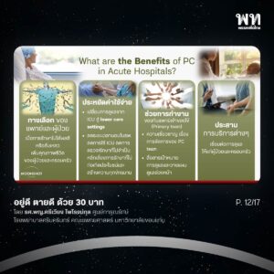 Palliative Care เป็นทางเลือกของผู้ป่วย ครอบครัว และหมอ ช่วยประหยัดค่าใช้จ่าย ช่วยการทำงานของหมอเจ้าของไข้ โดยทีมดูแลแบบประคับประคองเข้าไปประสานบริการกับคนไข้ต่างๆ