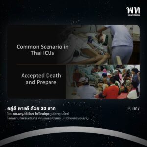 เมื่อเขาไม่รับรู้สถานการณ์จึงไม่มีการวางแผนล่วงหน้า พอรักษาผ่านเครื่องพยุงชีพ ใส่ท่อเข้าห้องไอซียู พอจะเอาท่อออกครอบครัวก็รู้สึกผิด ต้องเสียชีวิตภายใต้เครื่องพยุงชีพ