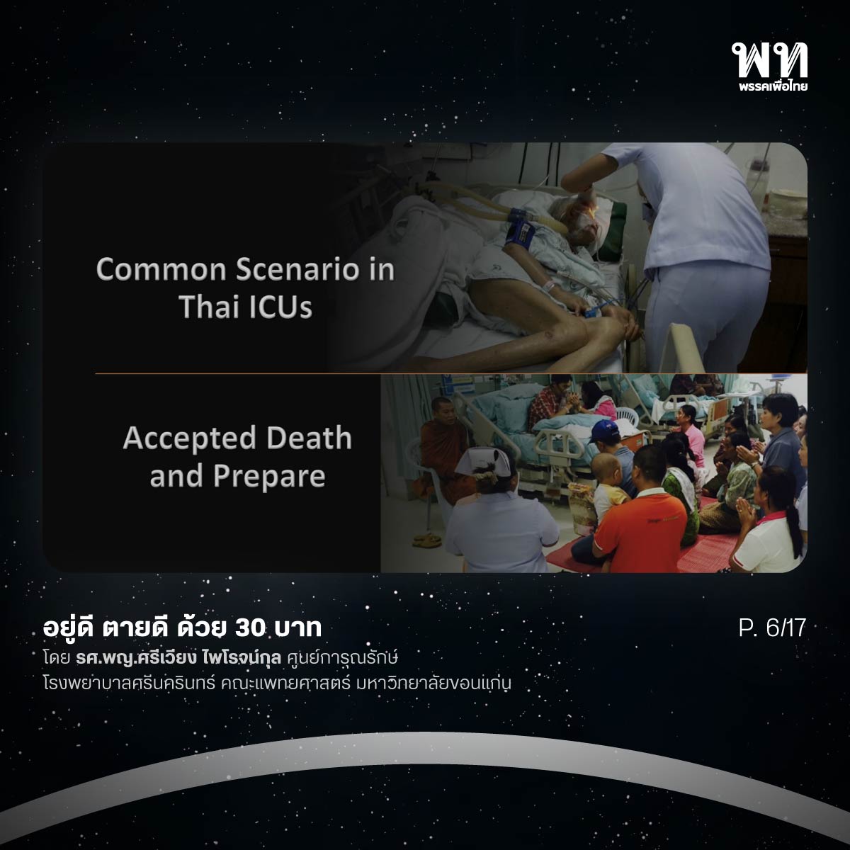 อยู่ดี ตายดี ด้วย 30 บาทโดย รศ.พญ.ศรีเวียง ไพโรจน์กุล ศูนย์การุณรักษ์ โรงพยาบาลศรีนครินทร์ คณะแพทยศาสตร์ มหาวิทยาลัยขอนแก่น