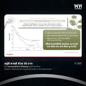 จากรายงานทางการแพทย์ที่ตีพิมพ์ในวารสารต่างประเทศ ผู้ป่วยมะเร็งระยะที่ 4 แบ่งเป็นกลุ่มหนึ่งมีทีมผู้ดูแลประคับประคอง อีกกลุ่มดูแลแบบปกติ