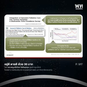 Palliative Care ประหยัดค่าใช้จ่ายได้ ไม่ใช่แค่งบประมาณประเทศ แต่เป็นของครอบครัวด้วย ถึงแม้ว่ามี Palliative Care ในระบบสุขภาพ แต่ยังมีช่องว่างอีกเยอะต้องเติมเต็มให้ระบบมีความแข็งแรงมากกว่านี้