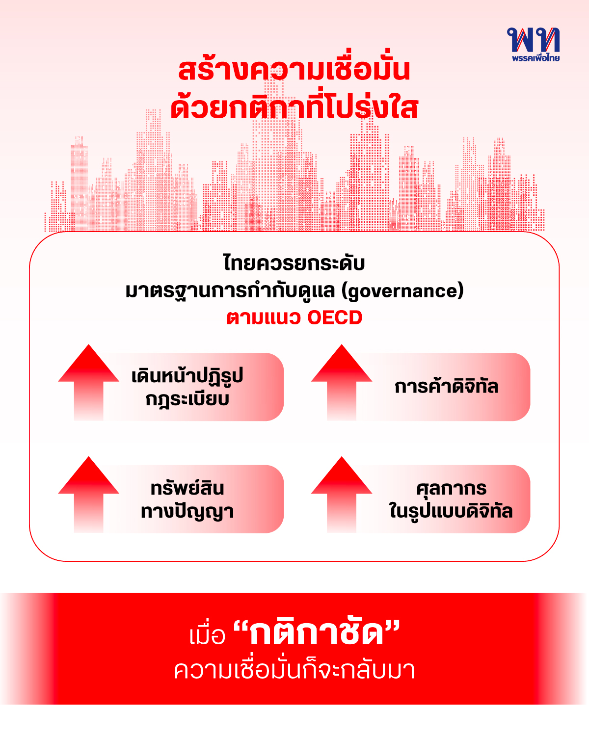 เศรษฐกิจจะเติบโตได้ ต้องอาศัย ความเชื่อมั่นในกฎระเบียบและธรรมาภิบาล ประเทศไทยจึงควรนำแนวทางของ OECD มาใช้จริง เช่น