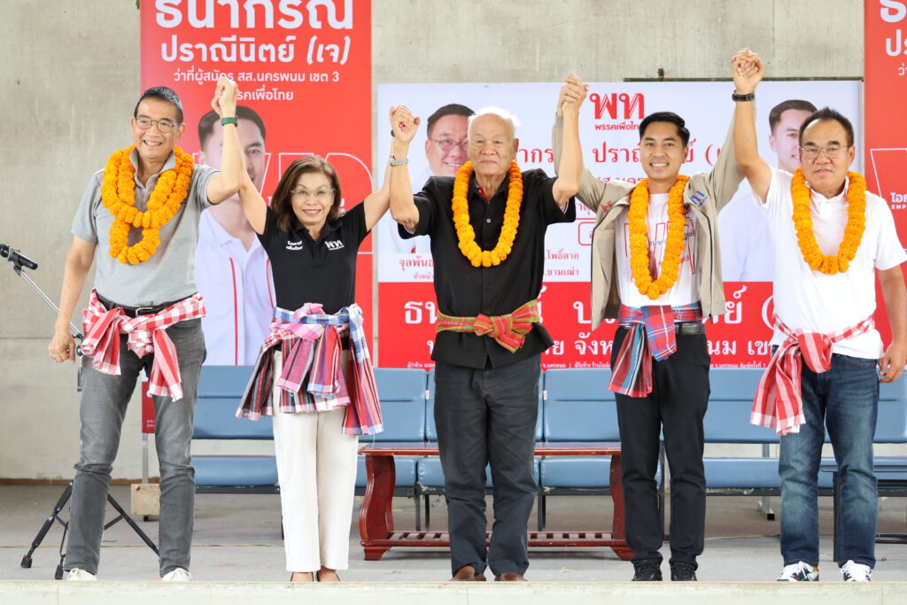 นางมนพร เจริญศรี สส.เขต 2 นครพนม พรรคเพื่อไทยและอดีตรัฐมนตรีช่วยว่าการกระทรวงคมนาคม พร้อมด้วย นายมาริษ เสงี่ยมพงษ์ อดีตรัฐมนตรีว่าการกระทรวงการต่างประเทศ พร้อมด้วยนายไพจิต ศรีวรขาน อดีต สส.เขต 3 นครพนม พรรคเพื่อไทย และนายวิทยา อินาลา อดีต สว.นครพนม ได้ลงพื้นที่เปิดเวทีปราศรัยย่อย ในพื้นที่ เขต 3 นครพนม ประกอบด้วย อ.เมืองนครพนม อ.ธาตุพนม และ อ.เรณูนคร สนับสนุนเปิดตัว นายธนากรณ์ ปราณีนิตย์ หรือ สจ.เจ ผู้เสนอตัวลงสมัครรับเลือกตั้งสมาชิกสภาผู้แทนราษฎร เขต 3 นครพนม พรรคเพื่อไทย
