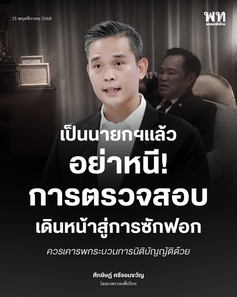 ‘โฆษกเพื่อไทย’ จี้ ‘อนุทิน’ เป็นนายกฯ แล้ว อย่าหนีการตรวจสอบ เดินหน้าสู่การซักฟอก แนะควรเคารพกระบวนการนิติบัญญัติด้วย