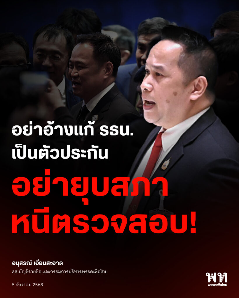 “รัฐบาลเสียงข้างน้อยของนายอนุทินไม่ควรยุบสภา หนีการตรวจสอบ และไม่ควรนำประเด็นการแก้ไขรัฐธรรมนูญมาใช้เป็นตัวประกันทางการเมือง” นายอนุสรณ์ กล่าว