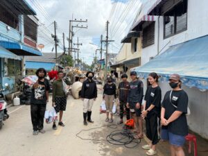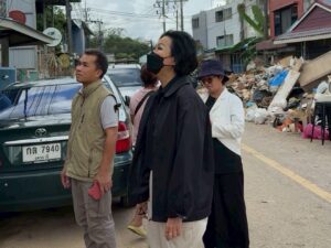 นอกจากนี้ ยังไปมอบถุงยังชีพให้พี่น้องประชาชนที่ ถนนดีแลนด์ 2 และ ถนนสุทธิสมิทธิ์ เป็นต้น โดยมีพี่น้องประชาชนได้เล่าถึงความคืบหน้าการทำความสะอาดบ้านเรือนโดยหลายรายบอกว่ายังไม่มีหน่วยงานรัฐเข้ามาดูแลจริงจัง จึงต้องฝากภาครัฐให้รีบทำความสะอาดบ้านเรือนพี่น้องโดยเร็ว มิเช่นนั้นแล้วก็ไม่แน่ใจว่า ที่บอกว่าจะคลีนนิ่งเสร็จภายใน 14 วันนั้นจะสำเร็จได้จริงหรือไม่