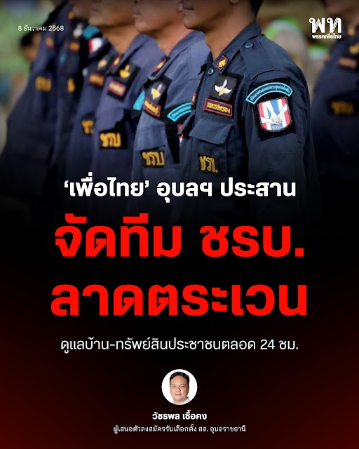 “วัชรพล เชื้อคง” อัด “อนุทิน” งบสร้างบังเกอร์ปกป้องประชาชนชายแดนล่าช้า แต่จัดงบจัดแข่งโมโตจีพี 4,000 ล้านได้เร็วทันใจ สส.เพื่อไทย จ.อุบลฯ ลั่นพร้อมดูแลพี่น้องประชาชนอย่างเต็มที่พร้อมจัดชุด ชรบ. ปกป้องทรัพย์สินประชาชน