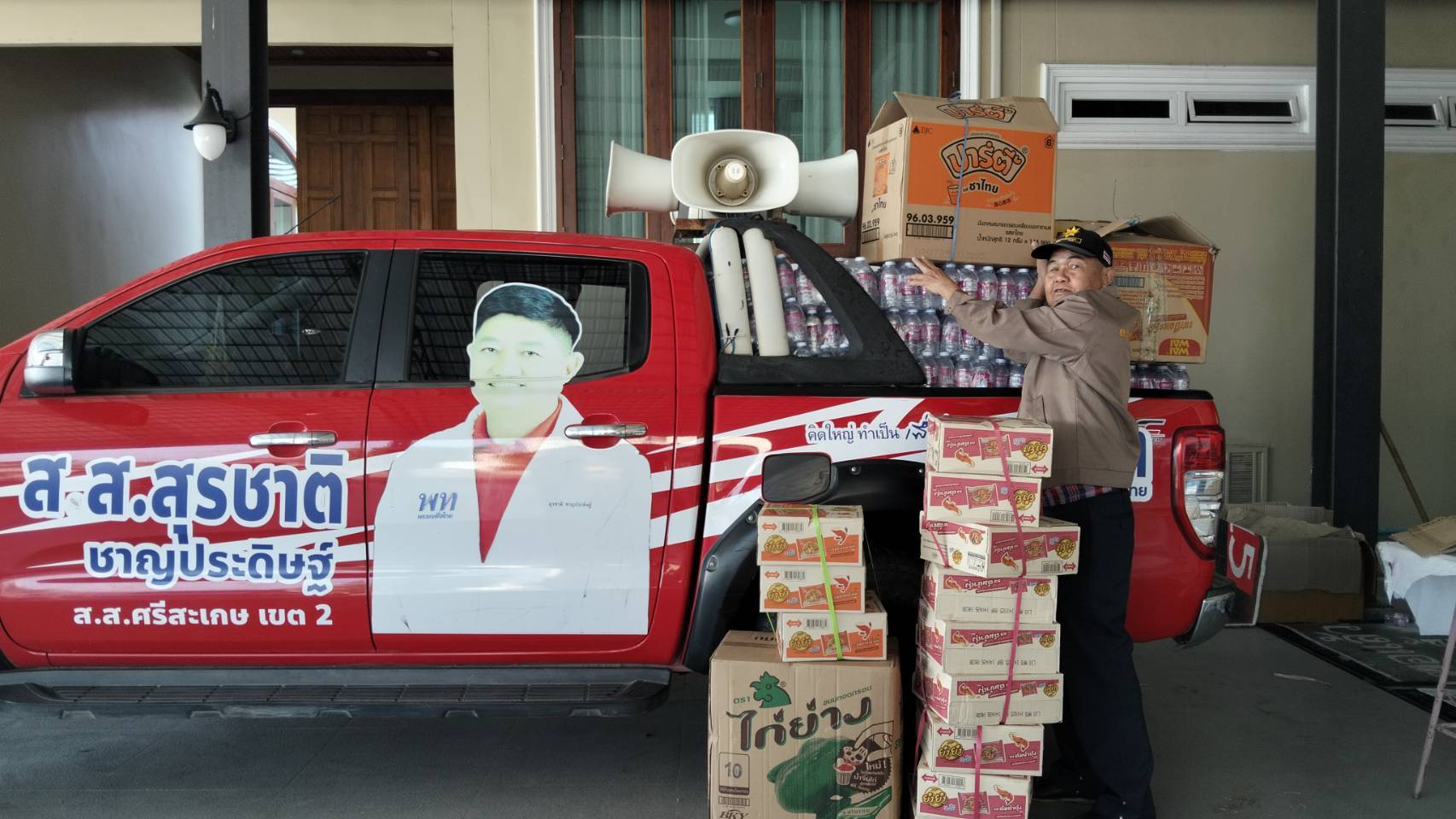‘วีระพล’ สส.ศรีสะเกษ พรรคเพื่อไทย ระดมข้าวสาร-อาหารแห้งเข้าศูนย์อพยพชายแดนไทย-กัมพูชา