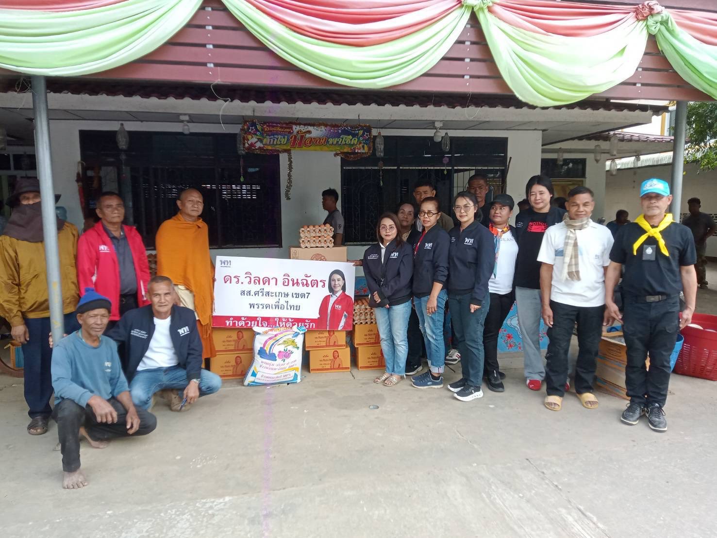 นางสาววิลดา อินฉัตร สส.ศรีสะเกษ พร้อมทีมงานส่งมอบสิ่งของจำเป็นให้กับพี่น้องประชาชนที่ศูนย์พักพิงชายแดนไทย กัมพูชารวมประมาณ 17 จุด ด้านนางสาวภูริกา สมหมาย ผู้เสนอตัวลงสมัครรับเลือกตั้งจังหวัดศรีสะเกษ ร่วมส่งมอบน้ำดื่มและของใช้จำเป็น ให้ศูนย์อพยพบ้านวัดบ้านคอก อ.ไพรบึง โดยกล่าวว่าขณะนี้มีพี่น้องประชาชนย้ายเข้าศูนย์พักพิงกว่า 500 คนแล้ว