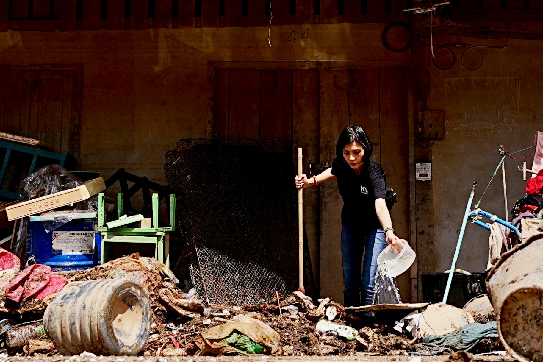 นางสาวทัดดาว ตั้งตรงเจริญ กล่าวว่า วันนี้พรรคเพื่อไทยนำจิตอาสามาร่วมกันทำงานรวม 66 คน โดยแบ่งงานเป็นผู้ชายไปช่วยยกของ ขยะชิ้นใหญ่ออกจากบ้านไปทิ้ง ผู้หญิงช่วยฉีดน้ำ ล้างบ้าน โดยมีรถฉีดน้ำขนาดใหญ่มาช่วย ทยอยทำมาตั้งแต่ซอย 7-9 ซึ่งเป็นชุมชนแออัด โดยผู้สูงอายุในชุมชนหลายคนกล่าวด้วยความดีใจว่า ตั้งแต่น้ำท่วมมา มีพรรคเพื่อไทยเป็นพรรคแรกที่เข้ามาช่วยจริงจัง เพราะเขาเป็นคนแก่ ไม่มีแรงล้างบ้าน พอไม่มีแรง ก็ต้องไปจ้างแรงงานเขาล้างก็ไม่มีเงินไปจ้าง บางคนบอกเพิ่งได้เงินจากลูกหลานที่ไปทำงานต่างถิ่น โอนเงินมาให้ 3 พันบาท เพื่อเอาไปจ้างคนมาช่วยล้าง พอมีพรรคเพื่อไทยมาช่วย ตนเองก็จะได้ประหยัด นำเงินนี้ไปใช้ซื้ออาหารและส่งของจำเป็นได้