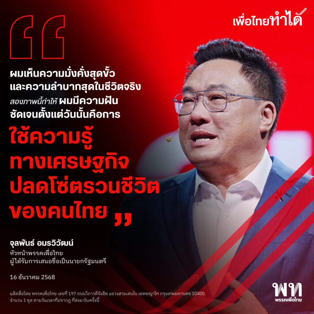 #พรรคเพื่อไทย #ยกเครื่องประเทศไทย #เพื่อไทยทำได้ #จุลพันธ์อมรวิวัฒน์