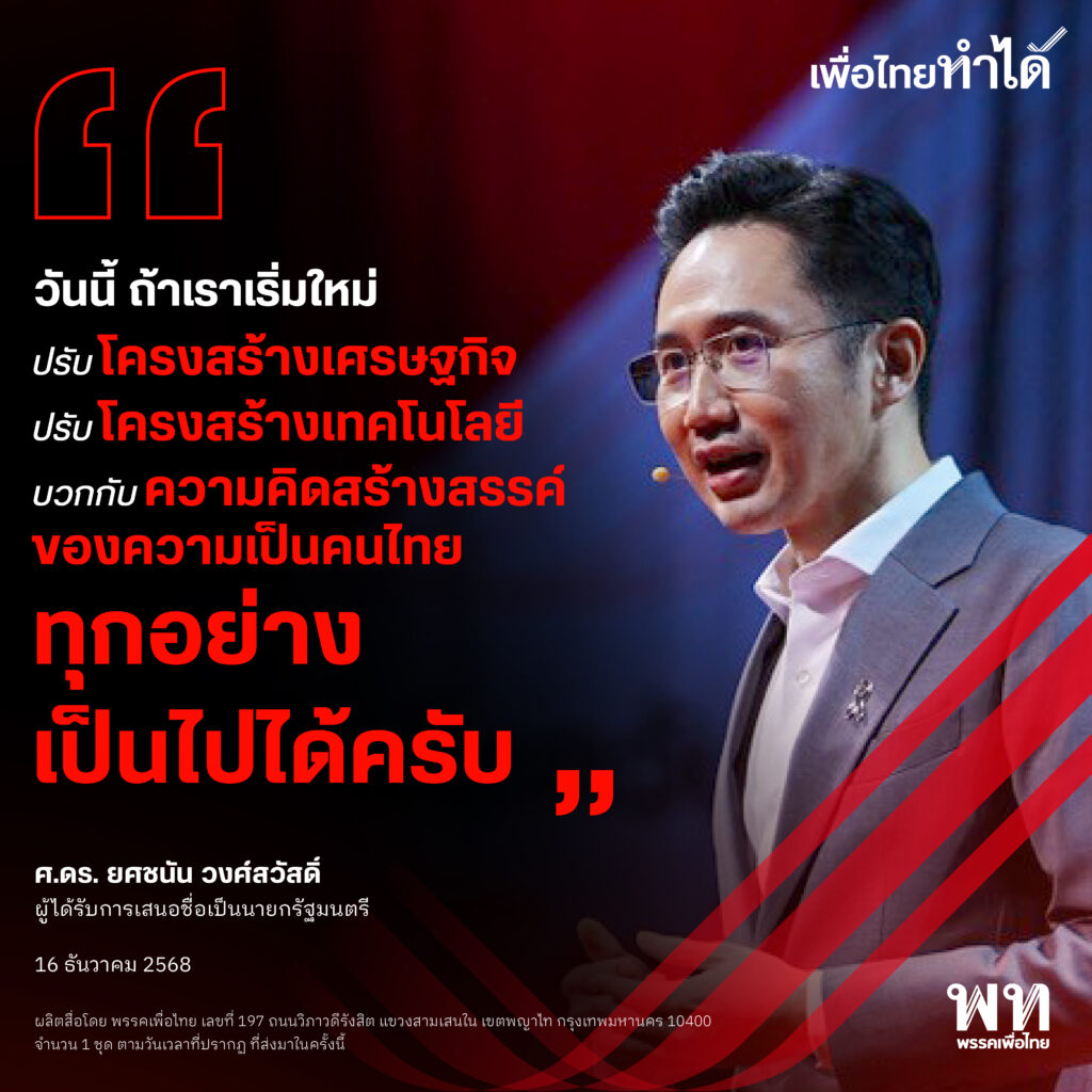 ‘เริ่มจากวันนี้ เวลานี้ วินาทีนี้ ยกเครื่องประเทศไทย ถ้าเพื่อไทยทำได้ ประเทศไทยทำได้ แน่นอน’