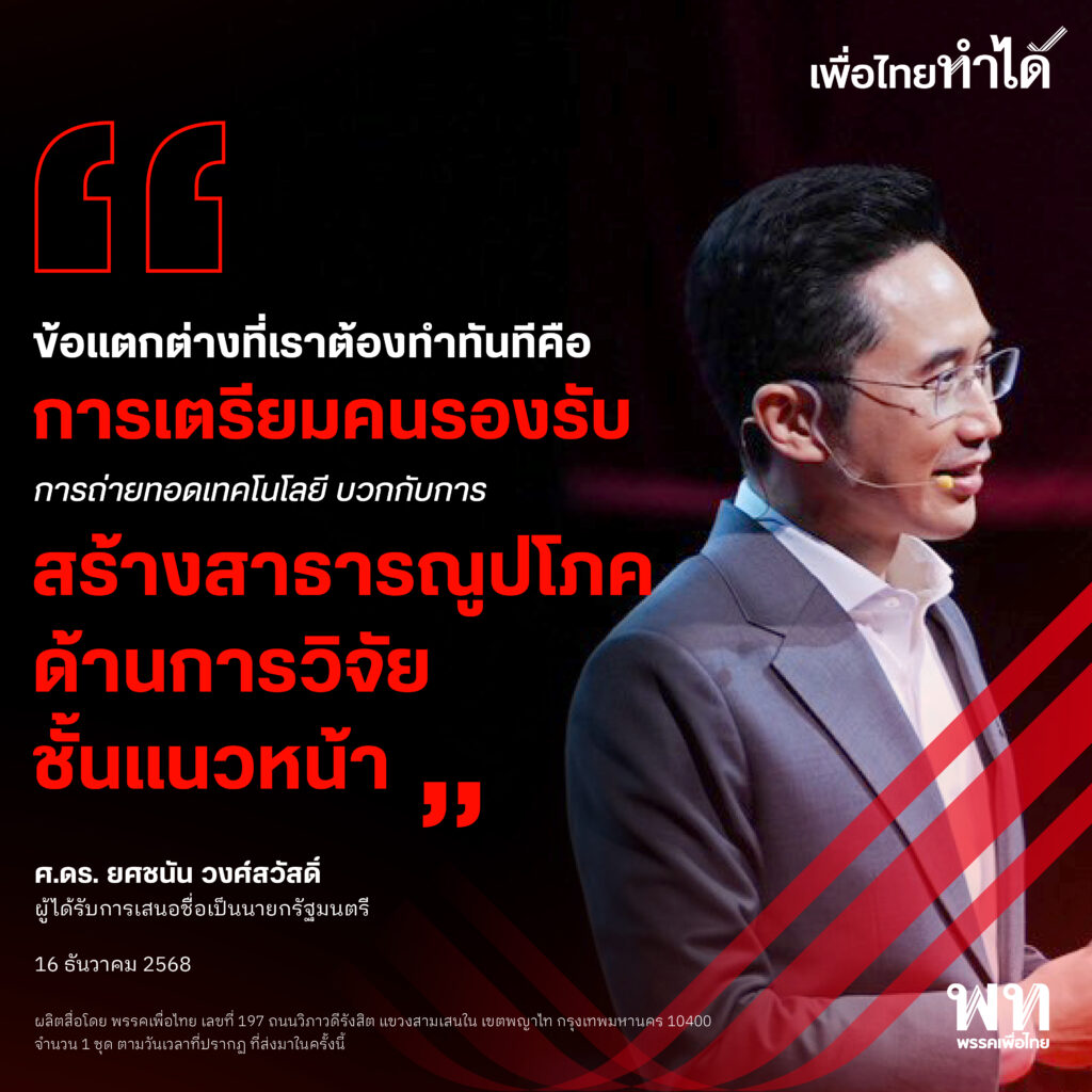 ศาสตราจารย์ ดร. ยศชนัน วงศ์สวัสดิ์ ผู้ได้รับการเสนอชื่อเป็นนายกรัฐมนตรี เปิดตัวและกล่าวแสดงวิสัยทัศน์เป็นครั้งแรกในงาน “ยกเครืองประเทศไทย เพือไทยทําได้” ยศชนันได้สรุปบทบาทการทำงานในฐานะนักวิจัยและนักบริหาร โดยเฉพาะงานวิจัยสำคัญที่เข้าแก้ไขข้อจำกัดของความพิการ และการป้องกันการเกิดอุบัติเหตุจากระบบประสาทและสมอง พร้อมแสดงวิสัยทัศน์ในการผลักดันประเทศเข้าสู่การเป็นประเทศรายได้สูง ด้วยเศรษฐกิจมูลค่าสูง