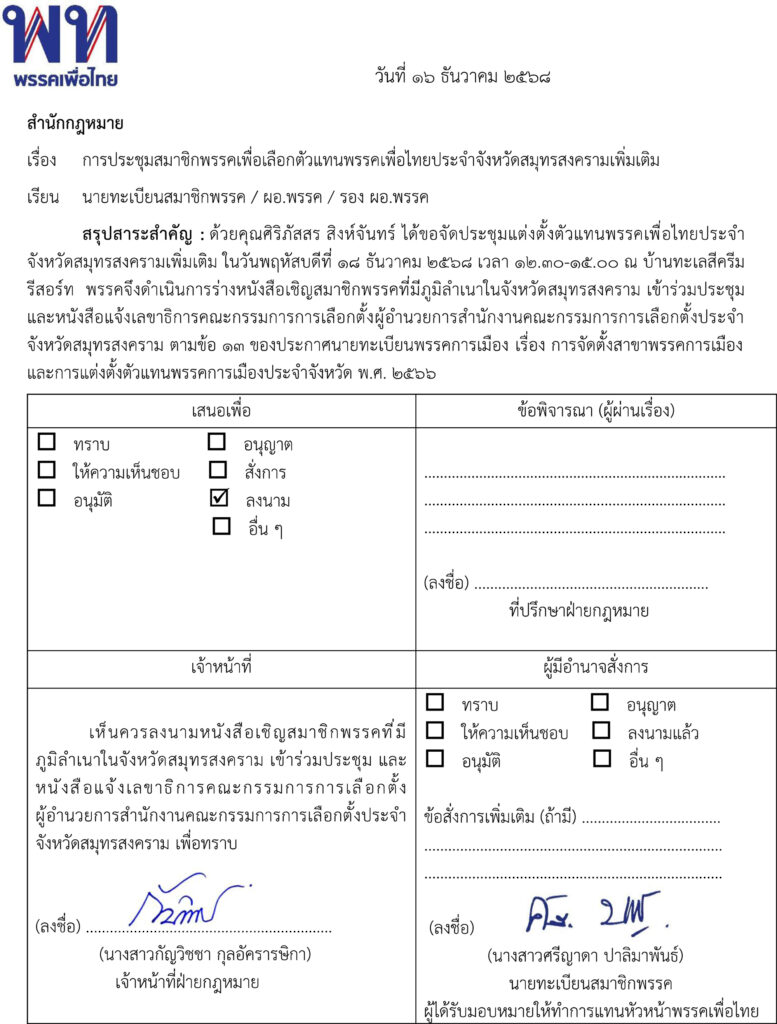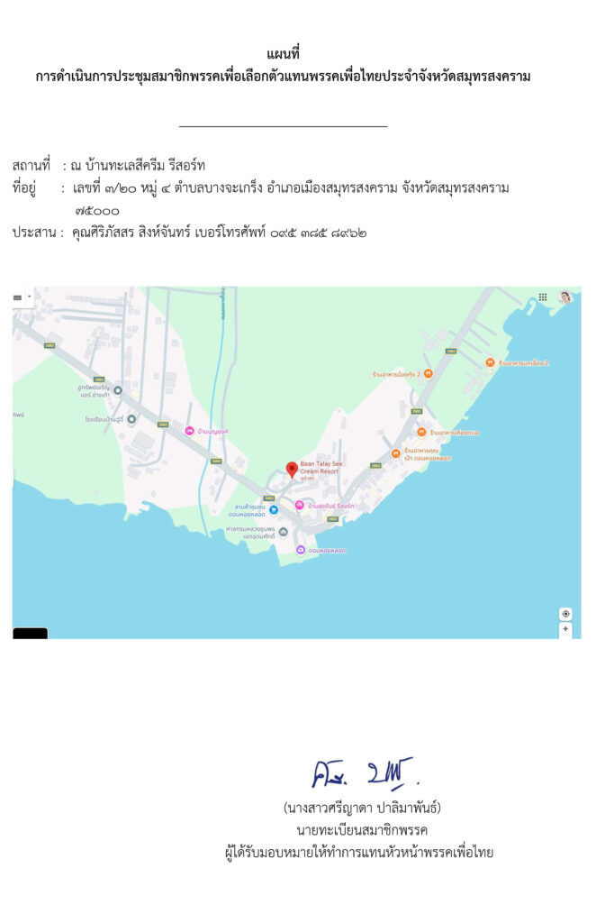 ขอเชิญเข้าการประชุมสมาชิกพรรคเพื่อเลือกตัวแทนพรรคเพื่อไทยประจำจังหวัดสมุทรสงคราม