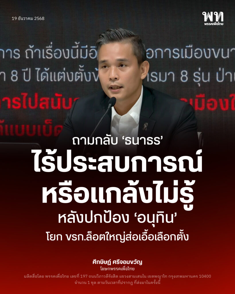 ‘จุลพันธ์’ นำทีมเพื่อไทย ลงพื้นที่สระแก้ว เยี่ยมให้กำลังใจประชาชนที่ศูนย์พักพิงผู้ได้รับผลกระทบจากชายแดนไทย-กัมพูชา กระทุ้งรัฐบาลเป็นรักษาการก็เยียวยาเร็วได้ พบยังมีความล่าช้า เห็นใจหลายครอบครัวต้องทิ้งบ้านทิ้งงานขาดรายได้ ด้าน ‘สรวงศ์’ ขอให้เร่งระดมหน่วยจิตแพทย์ดูแลสุขภาพจิตประชาชน ขณะที่ ‘ธีรรัตน์’ ขอให้เยียวยาอย่างเหมาะสม แนะขอร่วมมือนานาประเทศ เพื่อตั้งโต๊ะเจรจายุติความขัดแย้งให้เร็วที่สุด