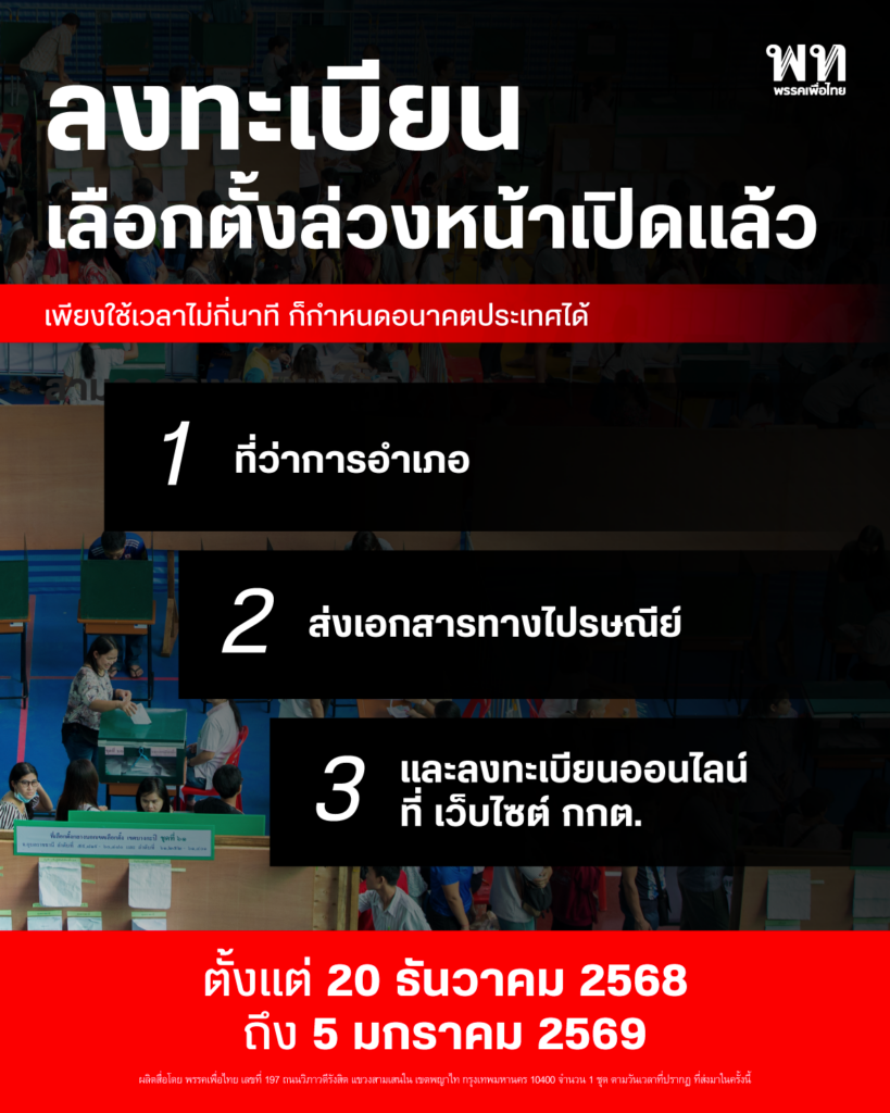• เปิดลงทะเบียนเลือกตั้งล่วงหน้า
