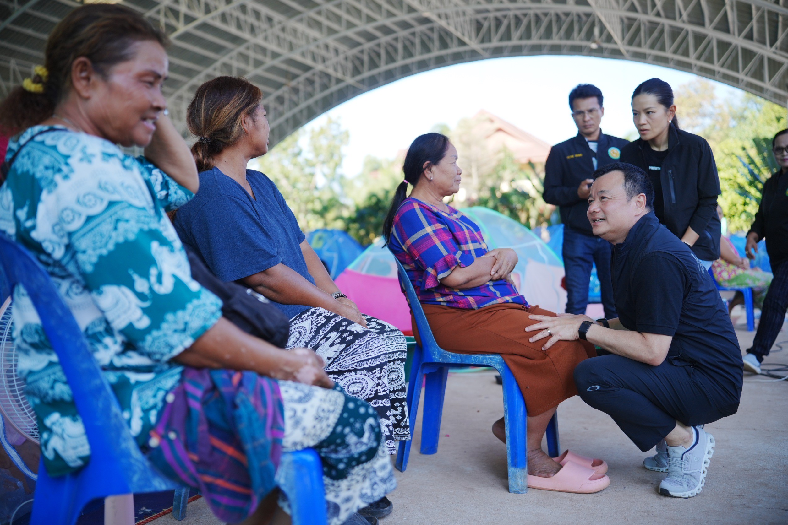 “วันนี้เดินทางมาในฐานะลูกหลานคนหนึ่งของคนในพื่นที่ วันนี้ขอมาให้กำลังใจกัน และรับฟังปัญหา เพราะหลายคนต้องทิ้งบ้านทิ้งหน้าที่การงานขาดรายได้ ขณะที่การเยียวยาของรัฐบาลถือว่ามีความล่าช้า ซึ่งตนจะรับเรื่องปัญหานี้ในการติดตามเพื่อแก้ไขในเรื่องนี้ให้เร็วที่สุด” นายสรวงศ์ กล่าว