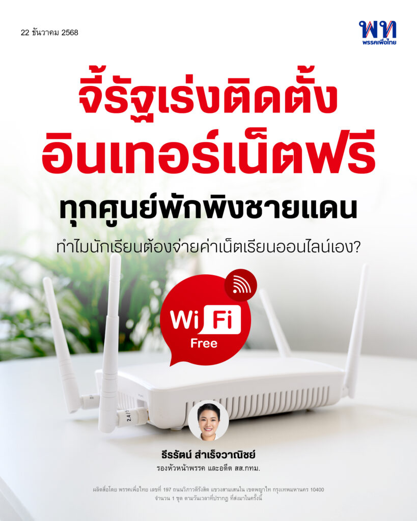 “ธีรรัตน์” แนะรัฐเร่งติดตั้งฟรีอินเทอร์เน็ตให้ศูนย์พักพิงฯ ทุกจุด เพื่อให้นักเรียนได้ใช้เรียนหนังสือ และผู้พักพิงได้ติดต่อสื่อสารกับญาติมิตร อย่าให้นักเรียนชายแดนต้องจ่ายค่าอินเทอร์เน็ตเรียนเอง