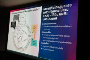 ผู้แทนสมาคมฯ ได้นำเสนอภาพรวมความเจ็บปวดของเศรษฐกิจดิจิทัลไทย ชี้ให้เห็นปัญหาสำคัญว่า รายได้ของคนไทยและผู้ประกอบการรายย่อยไม่หมุนเวียนอยู่ในระบบเศรษฐกิจภายในประเทศ แต่เม็ดเงินจำนวนมากกลับไหลออกไปยังแพลตฟอร์มต่างชาติ ธุรกิจขนาดใหญ่ และกิจกรรมเศรษฐกิจนอกระบบ ส่งผลให้ SME และ Startup ซึ่งเป็นฐานการจ้างงานหลักของประเทศ ขาดโอกาสในการเติบโตอย่างแท้จริง