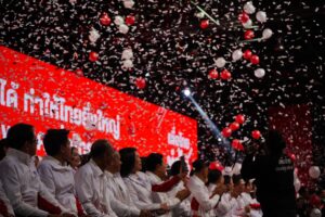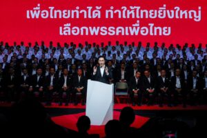โดยบรรยากาศ ณ ที่ทำการพรรคเพื่อไทย บรรยากาศเป็นไปอย่างคึกคัก แกนนำคนสำคัญของพรรคได้ขึ้นเวทีกล่าวแสดงวิสัยทัศน์ นำโดย นายจุลพันธ์ อมรวิวัฒน์ แคนดิเดตนายกรัฐมนตรี ในฐานะหัวหน้าพรรคเพื่อไทย และ นายสุริยะ จึงรุ่งเรืองกิจ แคนดิเดตนายกรัฐมนตรี ในฐานะผู้อำนวยการการเลือกตั้งพรรคเพื่อไทย ได้ย้ำถึงยุทธศาสตร์และความพร้อมของพรรคในทุกมิติ