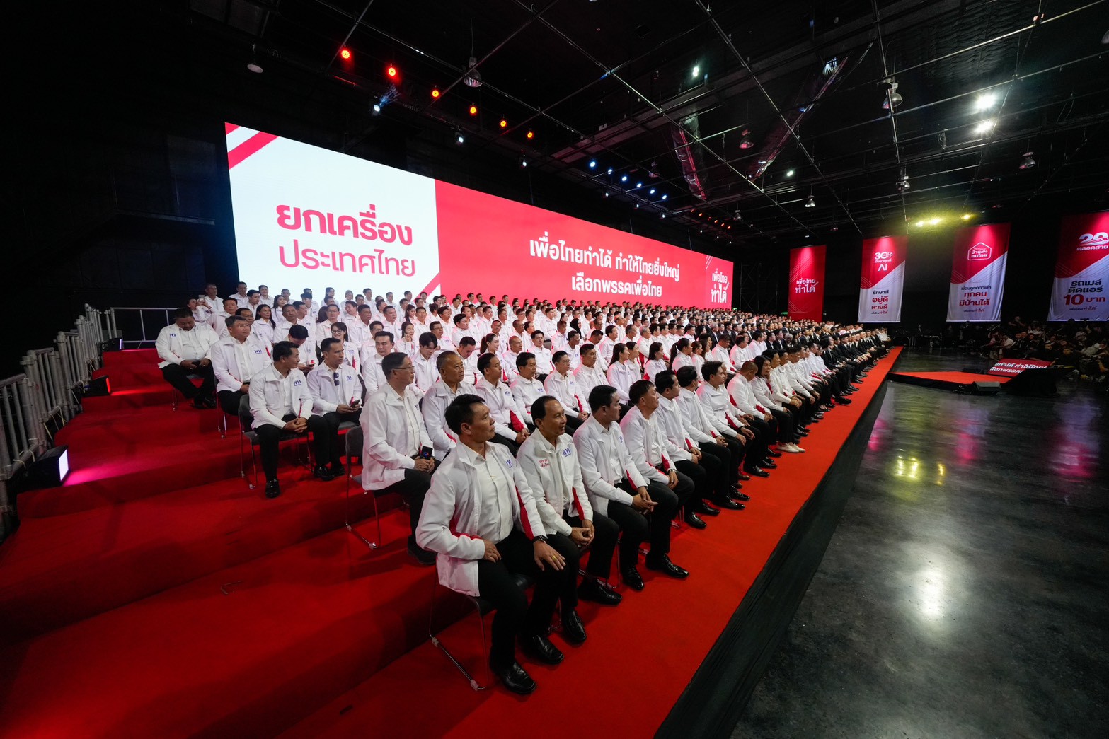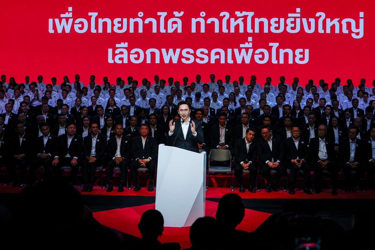 25 ธันวาคม 2568 เวลา 10.30 น. ที่พรรคเพื่อไทย จัดกิจกรรมประกาศความพร้อมสูงสุดในการสู้ศึกเลือกตั้ง ที่จะเกิดขึ้น ในวันอาทิตย์ที่ 8 กุมภาพันธ์ 2569 โดยได้จัดงานเปิดตัวผู้ประสงค์ลงสมัครรับเลือกตั้ง สส. ครบทั้ง 500 คน ทั้งแบบแบ่งเขตและแบบบัญชีรายชื่อ ชูนโยบายหลักภายใต้สโลแกน “เพื่อไทยทำได้ ทำให้ไทยยิ่งใหญ่ เลือกพรรคเพื่อไทย ทั้งคนทั้งพรรค”