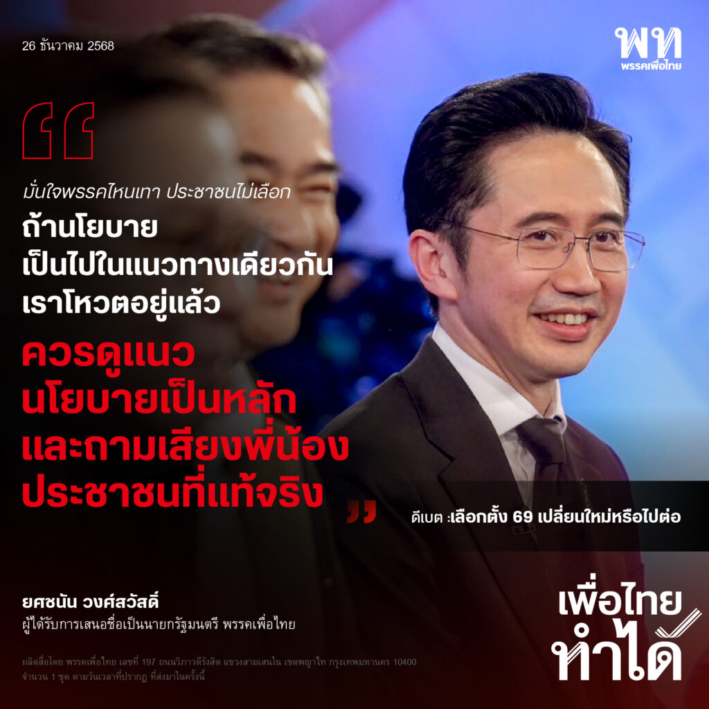 #พรรคเพื่อไทย #ยศชนันวงศ์สวัสดิ์ #เพื่อไทยทำได้ #เลือกตั้ง69 #ดีเบตเลือกตั้ง